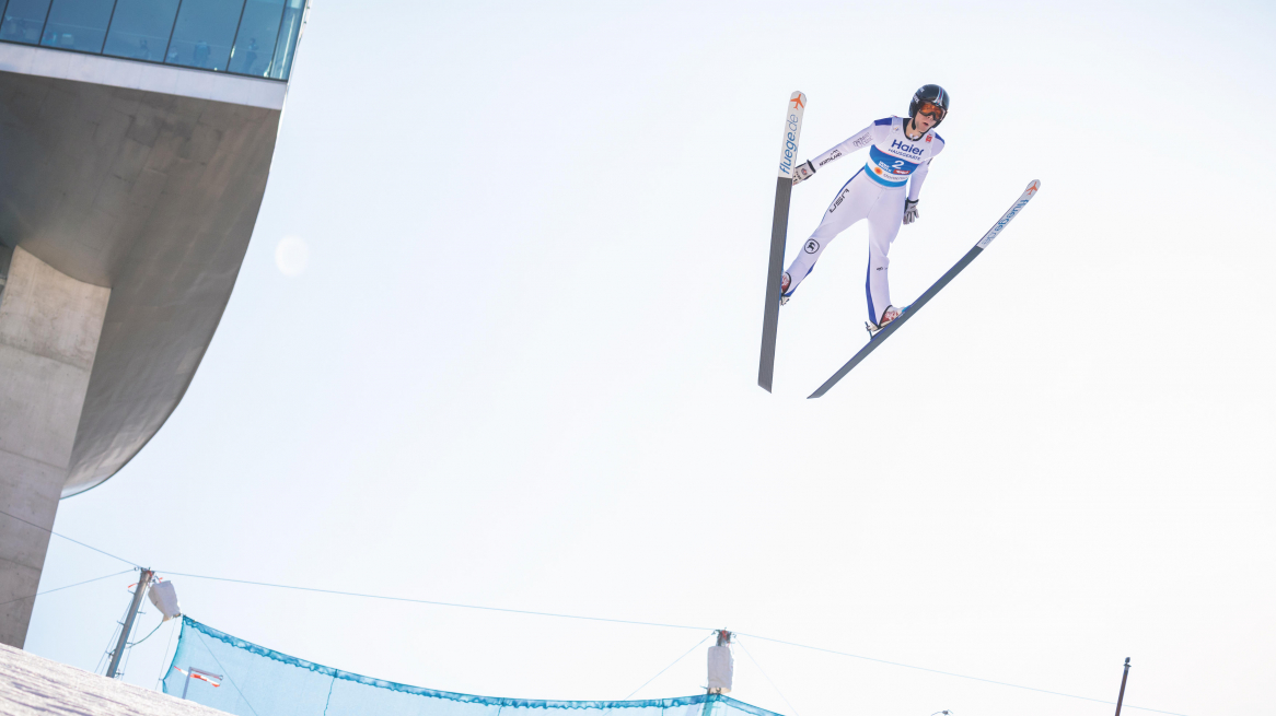 Ein ‘moderner’ Springer absolviert im V-Stil die Bergisel-Sprunganlage. Bild: Innsbruck Tourismus/Tom Bause