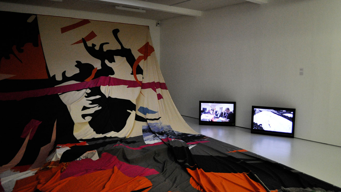 Die große, raumdominierende Arbeit „Orientation in 100 Revolutions“ transportierte der Künstler auf den Kaunertaler Gletscher, der aufgrund der Erderwärmung schwindet. „Siniša Ilić wirft die Frage auf, wie revolutionäre politische Geschichte und aktuelle ökologische Bewegungen in Beziehung zueinander gesetzt werden können“, erklärt Marjanović.