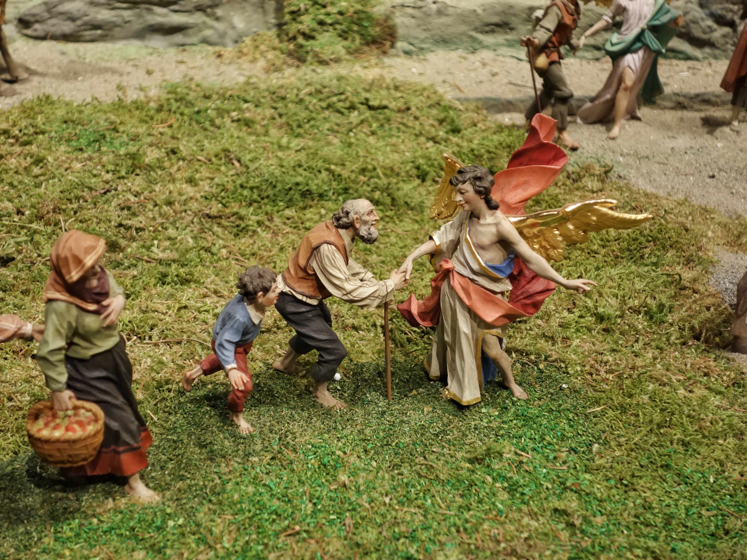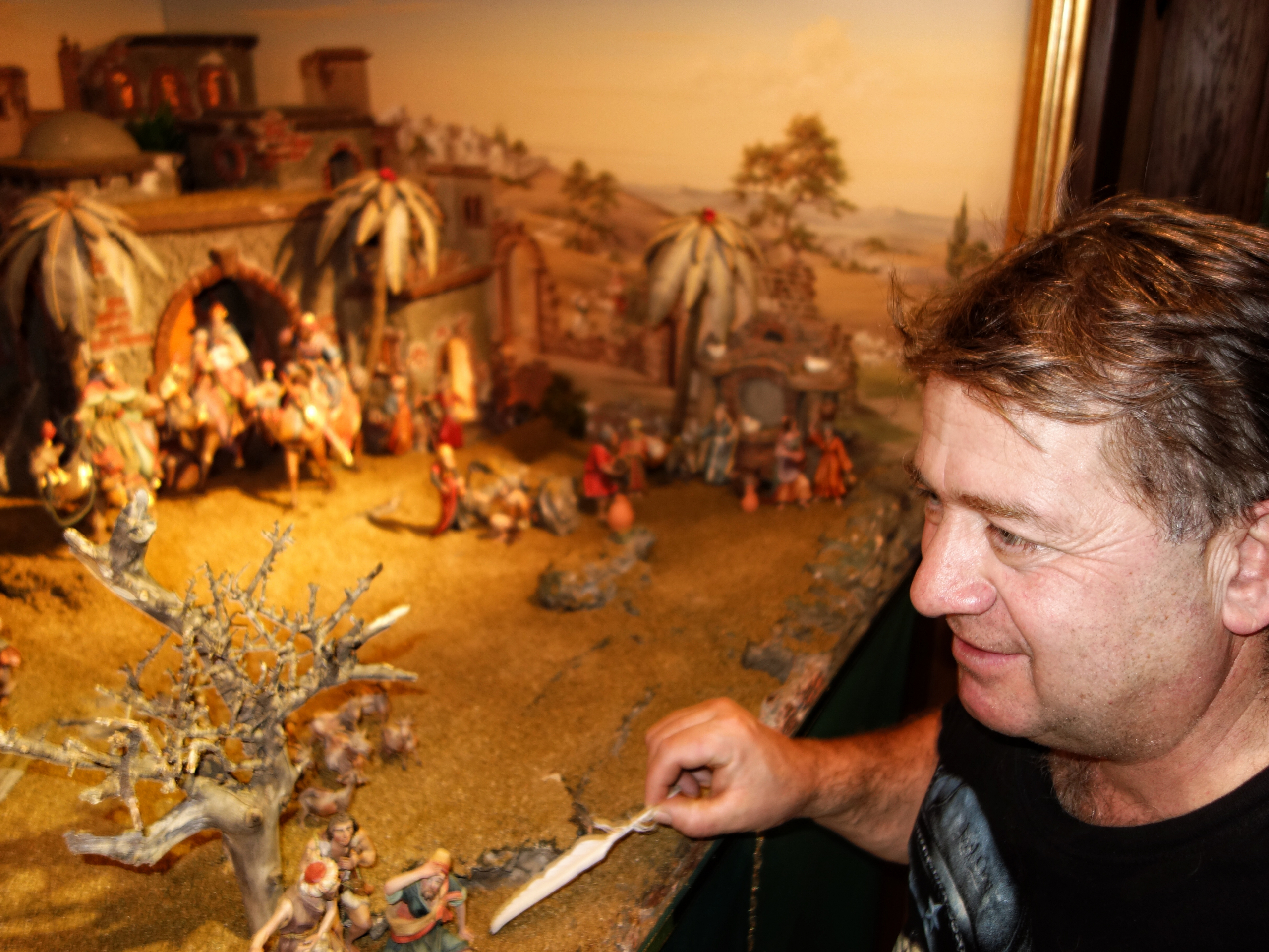 Wie lange er denn braucht, seine Krippe aufzustellen will ich dann von ihm wissen. „Mindestens zwei Tage“, sagt er. Und wer je die Details einer Krippe genauer betrachtet hat, kann das sofort nachvollziehen. Die Krippen-Bäume müssen Jahr für Jahr neu zusammengesteckt, die Bauten und Figuren platziert und die Wiesen und Felder der Krippe mit neuen Farbpigmenten versehen werden. Eine Heidenarbeit!