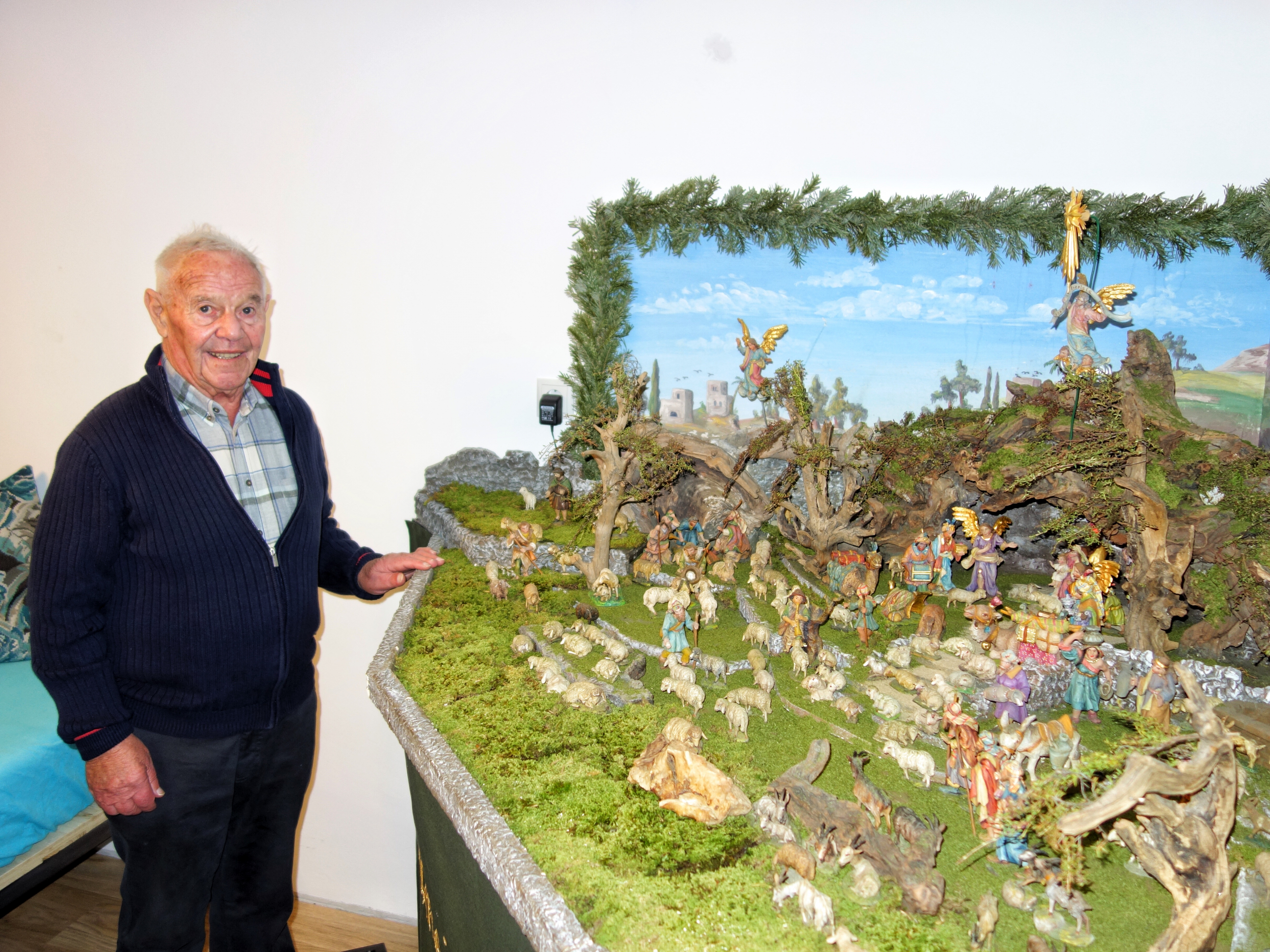 Konrad Pernlochner vor der Familienkrippe. Von den Figuren bis zur Malerei (auch) ein Werk der Pernlochners.