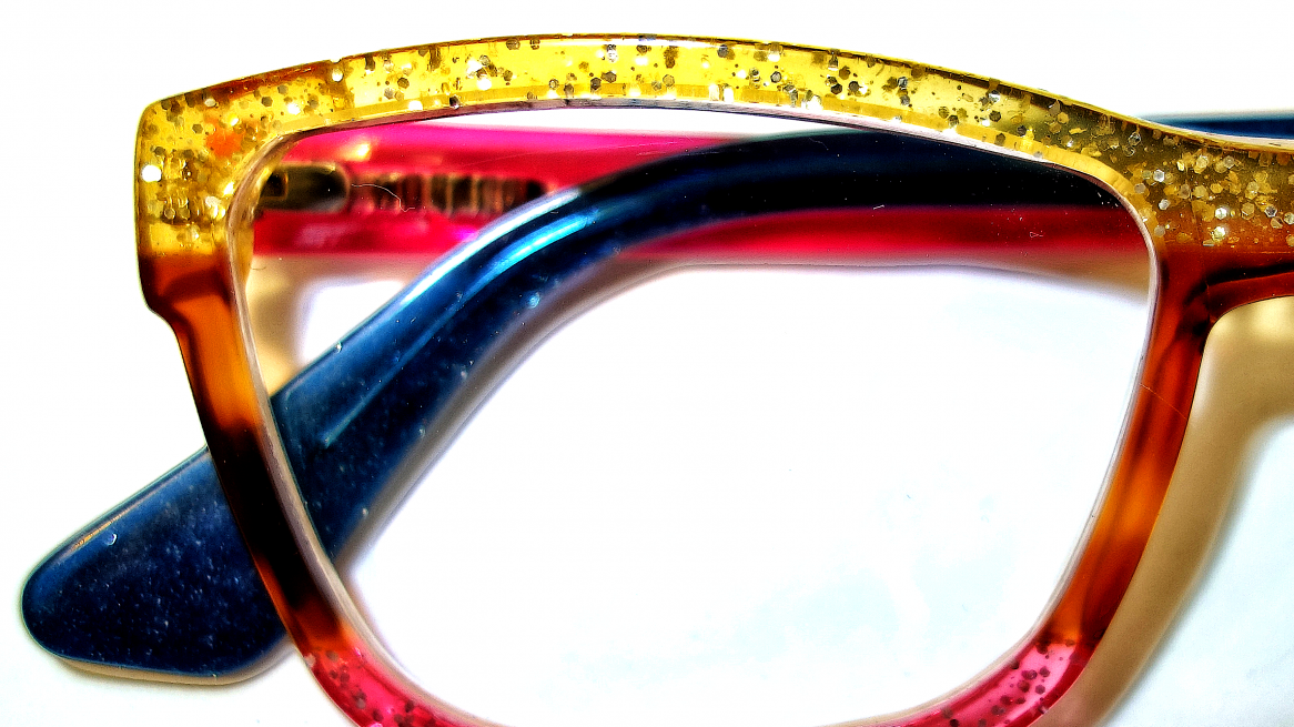 Ich habe mir vor zwei Jahren auf Vorschlag von Alexander meine eigene Brille ‚designen‘ zu lassen. Mir war es einfach zu lästig geworden, die billig hergestellten Lesebrillen alle paar Monate wegzuschmeißen und die optischen Gläser jeweils in eine neue einzupassen. Alexander hat mir damals dieselbe Brillenform in Azetat angefertigt. Individuell angepasst und wunderschön.
