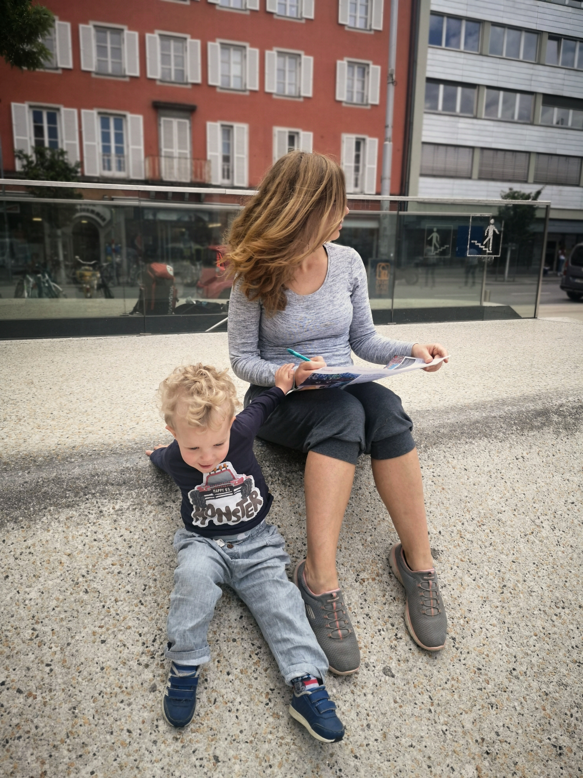 Es stehen zwei unterschiedliche Schnitzeljagd-Routen zur Auswahl: „Auf den Spuren der Habsburger“ und „Das authentische Innsbruck“. In der Broschüre „Walks to explore. Innsbrucks Vielfalt erobern“, die wir zusammen mit der Schatzkarte ausgehändigt bekommen, sind die Routen detailliert beschrieben. Beide klingen spannend, wir entscheiden uns aber für die erste, weil sie mit 2,5 Kilometern kürzer ist und im Gegensatz zur anderen eigentlich immer nur eben verläuft. Die Route „Das authentische Innsbruck“ würde uns unter anderem in den Stadtteil Hötting führen und allein der Gedanke, meinen Sohn im Kinderwagen die steile Kirschentalgasse hoch zu schieben, lässt mich schon schwitzen. So motiviert bin dann auch wieder nicht. Wer aber besonders eifrig ist oder sich nicht entscheiden will, kann natürlich beide Routen „abarbeiten“.