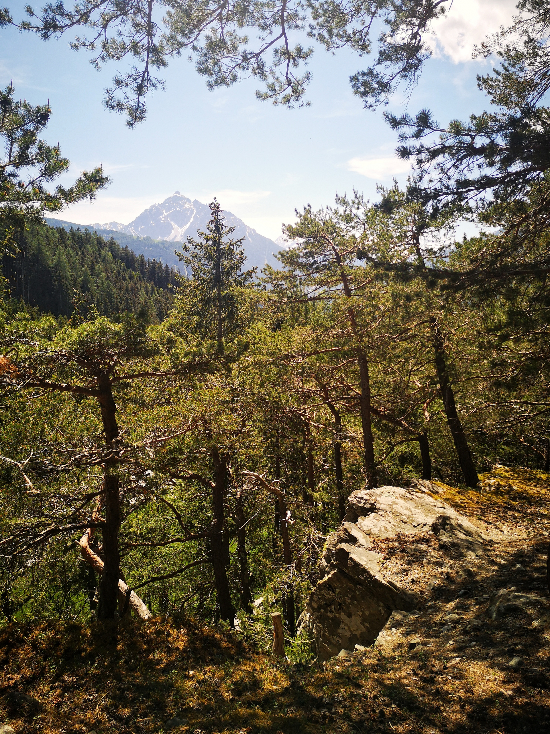 Schatzsucher aufgepasst, wir haben eine Mission! Hier möchte ich euch zu guter Letzt die Lieblingswanderung meines Sohnes vorstellen: Es geht zum sagenumwobenen Schatzstein am Mieminger Plateau. Ich weiß nicht, wie es bei euch ist, aber mein Großer ist ein Abenteurer. Er liebt Action jeglicher Art und mag Piraten- und Heldengeschichten. Was er nicht so toll findet, ist spazieren gehen. In der Wohnung läuft er herum, jagt seinen Bruder, kämpft mit Styroporschwertern und ist voller Energie. Sobald wir das Haus verlassen, ist die Energie verpufft und jeder Schritt anstrengend. Das sind Momente, in denen ich die Welt nicht mehr verstehe. Wie auch immer, ich habe gelernt, dass man meine Kinder mit zwei Dingen locken kann: Das ist zum einen Essen und zum anderen ein interessantes Ziel – und ihm dieses gut „verkauft“. Und genau so haben wir es beim Schatzstein gemacht. Es handelt sich um einen Stein – oder eigentlich einen Felsen – mitten im Wald. Ich persönlich finde das ja schon ziemlich cool, weil man darauf herumklettern kann, es ein toller Picknickplatz ist und ich sowieso gerne im Wald bin, besonders am Mieminger Plateau, die Lärchenwälder dort sind einfach wunderschön.