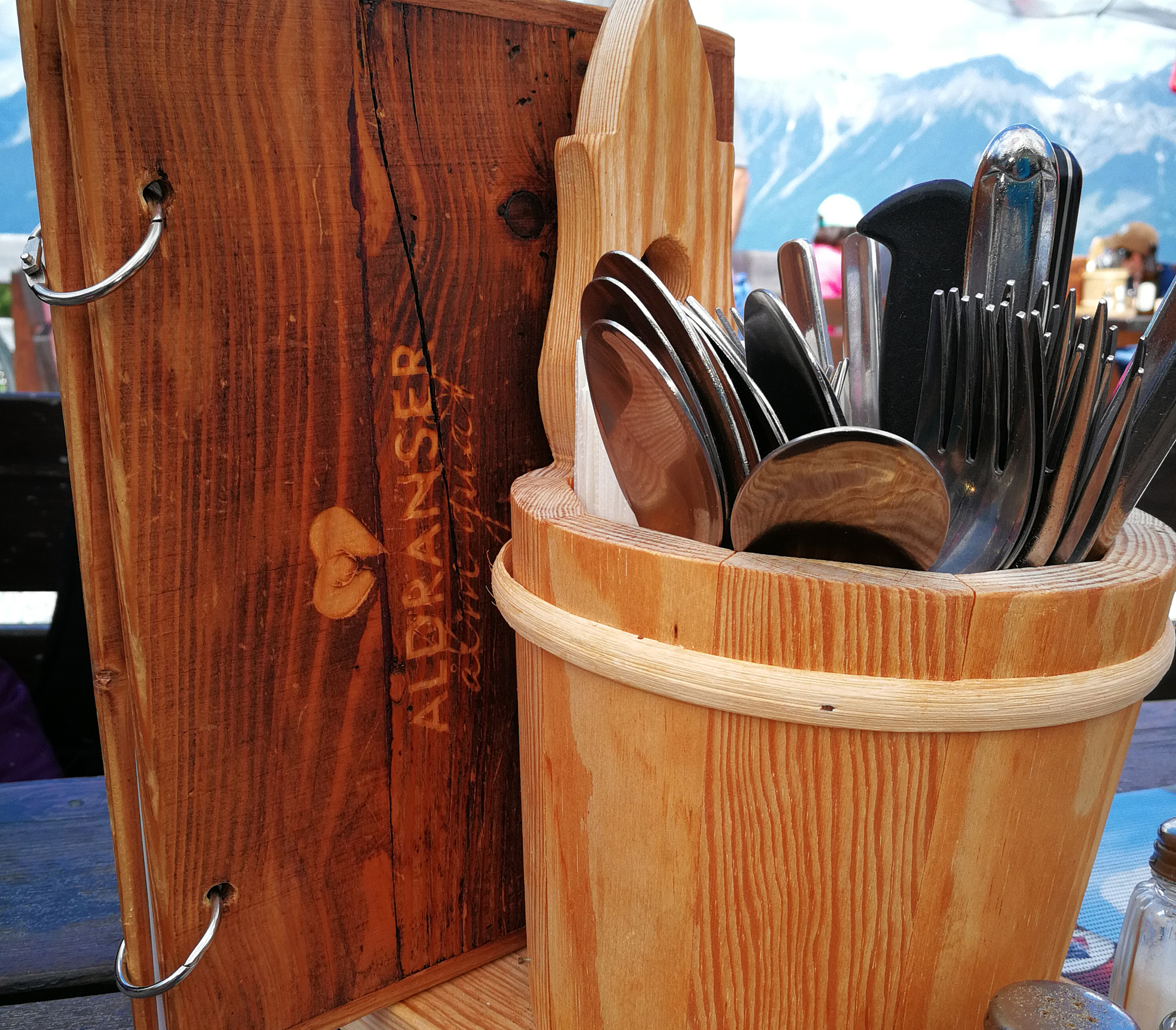 Die Aldranser Alm liegt auf 1.511 Meter und bietet einen wunderbaren Blick auf Innsbruck. Meine Begleitung und ich stärken uns hier mit einem – eh klar – Kasknödel mit Salat, Wiener Schnitzel mit Salat, Kartoffelgulasch mit Salat und dazu Skiwasser (Himbeer-Soda) und Almdudler. Was ich ganz toll finde: Auf der Aldranser Alm gibt es im Sommer Jazznächte bei Vollmond. Infos dazu posten die Almbetreiber auf ihrer Facebookseite. Wirklich ein Geheimtipp und sehr zu empfehlen als Kontrastprogramm zum üblichen Nachtprogramm in der City.