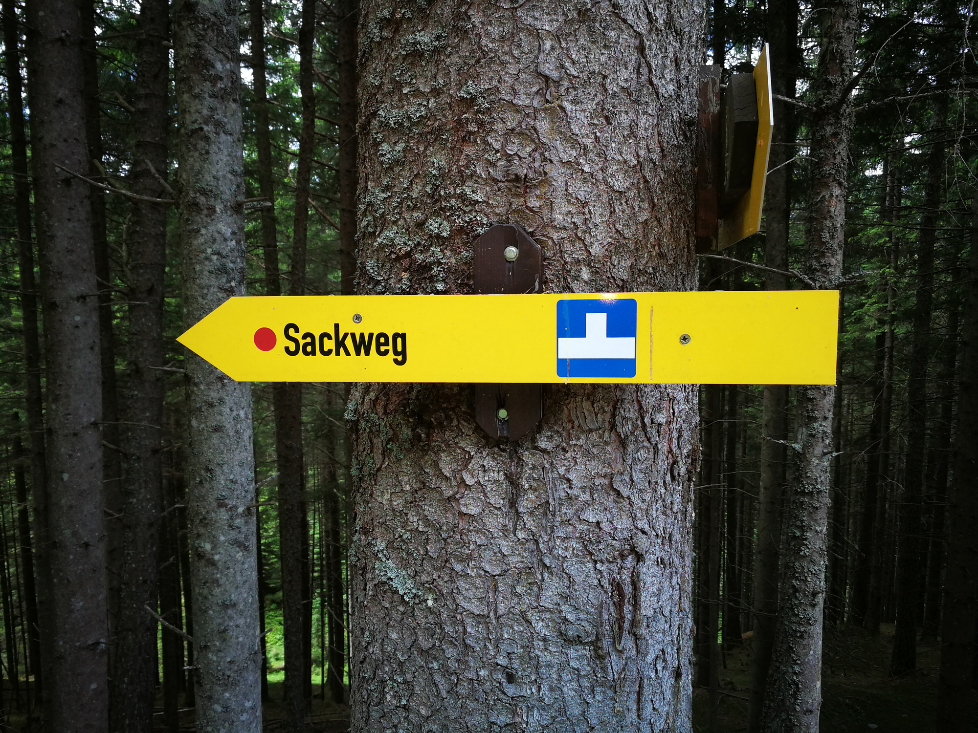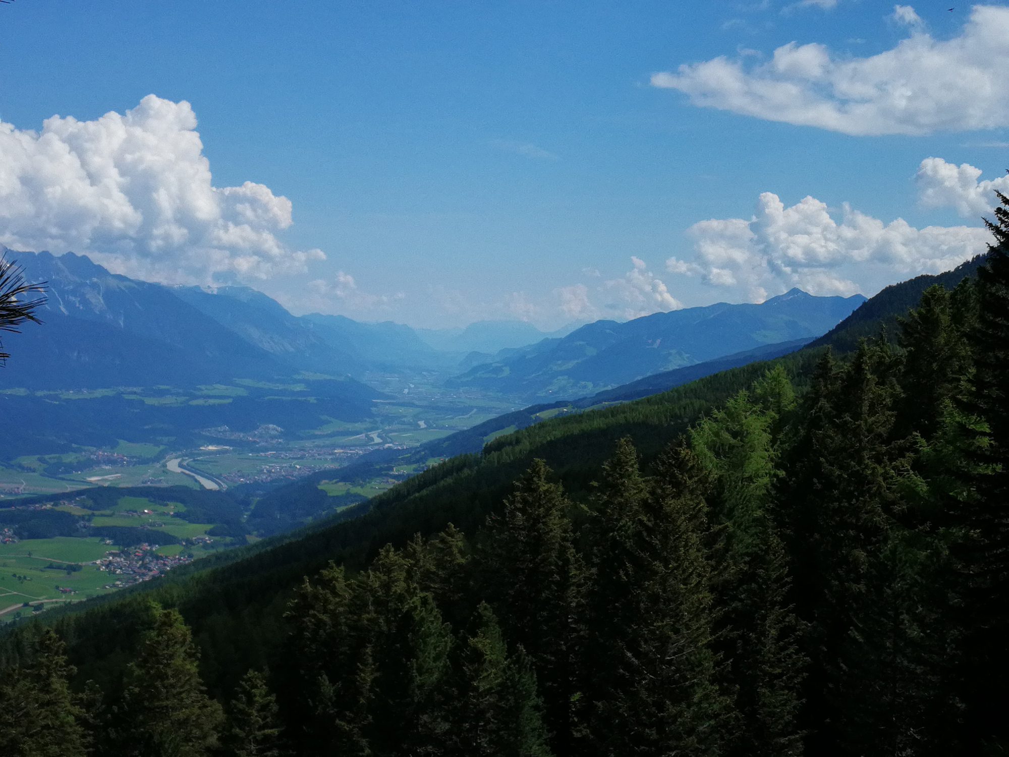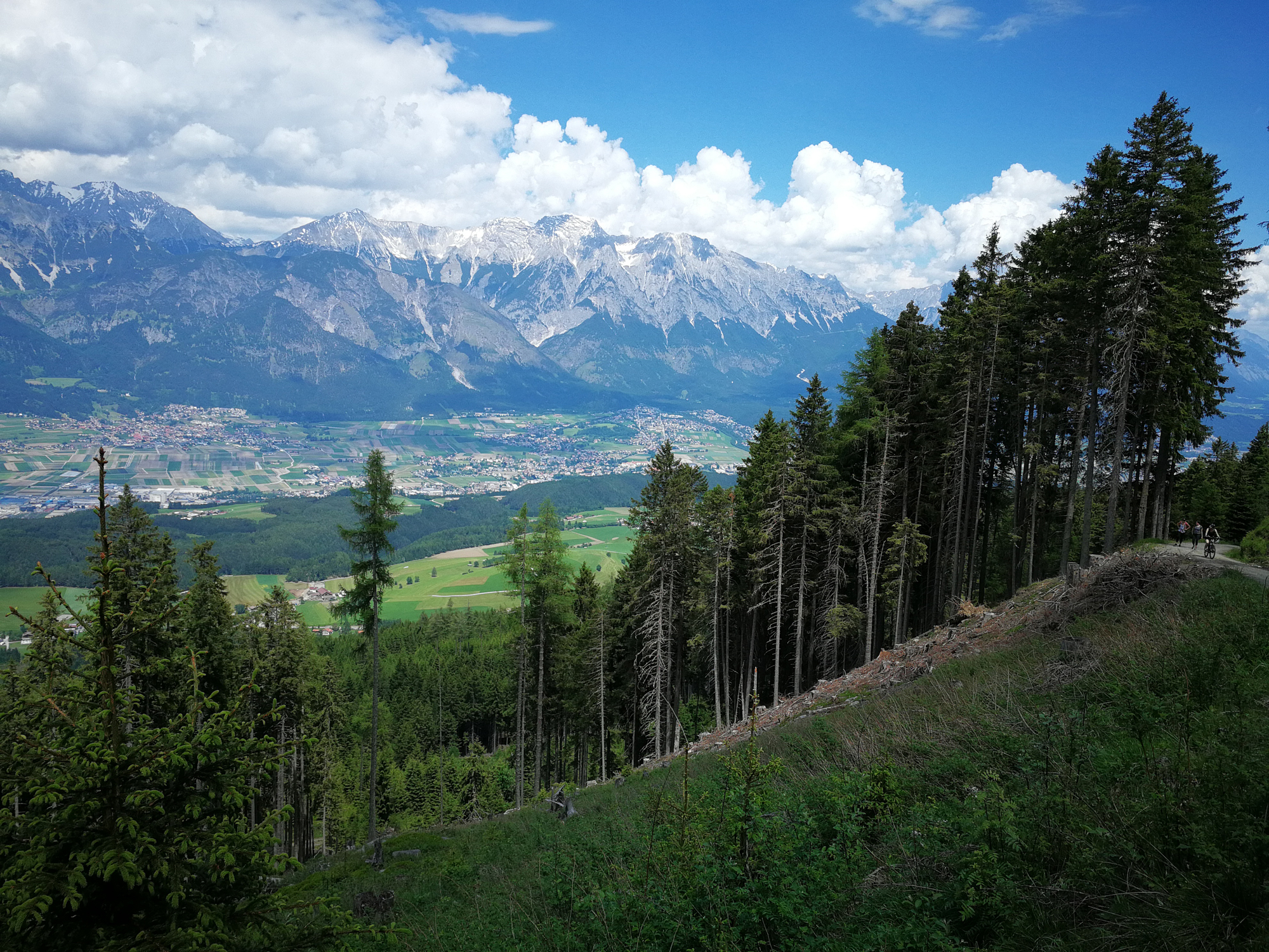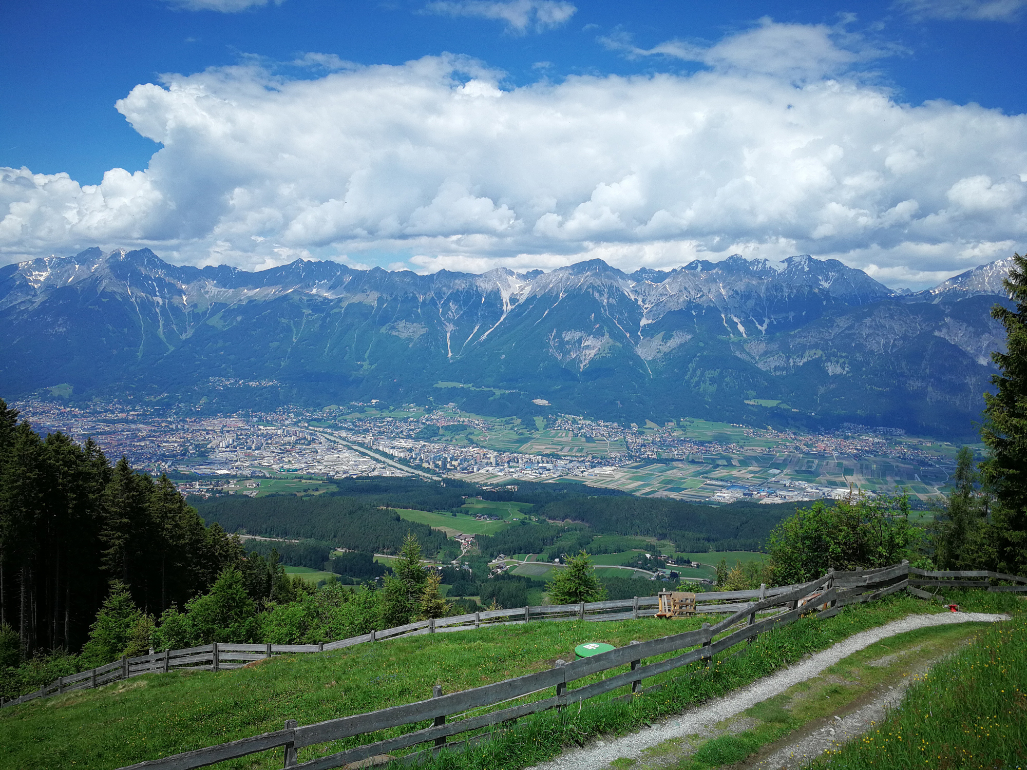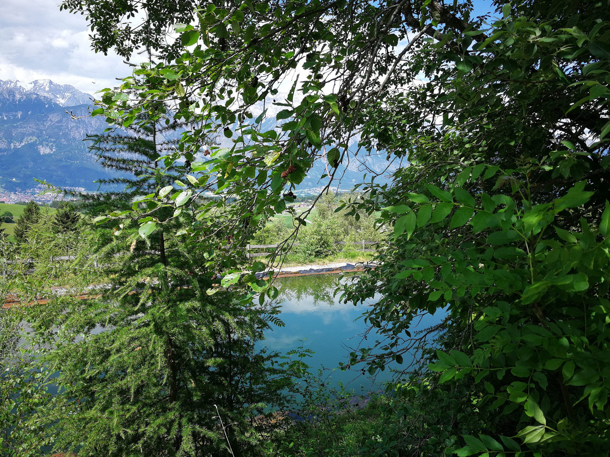 Vorbei an der Lanser Alm führt zunächst der breite Almweg talwärts und dann ein Steig zur Sistranser Alm. Auf 1.613 Meter Höhe liegt die Sistranser Alm, aus meiner Sicht am schönsten von allen Almen. Die Etappe dorthin dauert etwa zehn bis fünfzehn Minuten. Schon etwas hungrig oder sagen wir mal auf den Geschmack gekommen, huscht die Kellnerin mit zwei üppigen Tellern Kasknödel mit Salat vorbei. Instinktiv möchte man die Almwanderung an dieser Stelle abbrechen, den Ausblick und die Kasknödel genießen. Wäre ja auch kein Problem. Über die Forststraße ginge es zu Fuß hinunter nach Sistrans und von dort per Bus wieder nach Innsbruck.