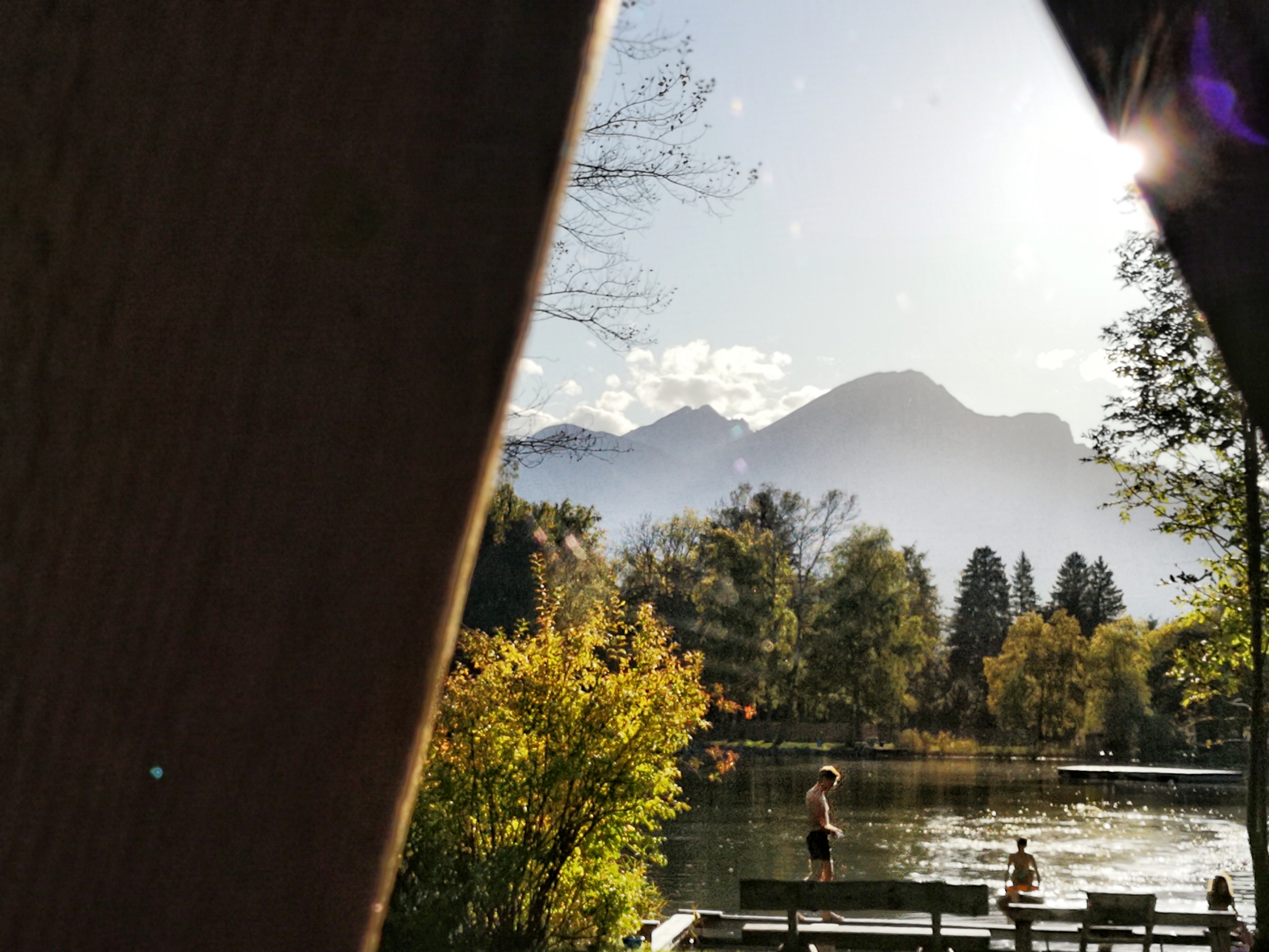 Fangen wir mit einer wunderbaren Miniwanderung an, die erstens kinderwagentauglich und zweitens schon für ganz Kleine gut bewältigbar ist. Wir starten beim gebührenpflichtigen Parkplatz des Gasthof Walzl und spazieren Richtung Norden. Dann überqueren wir die Straßenbahnschienen und biegen nach links (also Richtung Westen) ab. Entlang der Schienen spazieren wie ein paar Minuten, bevor wir rechts zum Lanser See abbiegen. Hier findet auch schon unser erster Stopp statt. Nach so einer „langen“ Wanderung muss man sich ja schließlich auch erst einmal ausruhen. Der Lanser See ist wirklich zu schön, um ihn einfach so links liegen zu lassen. Auch wenn die Badezeit vorbei ist, hat das Restaurant Freitag, Samstag und Sonntag geöffnet. Man genießt seinen Kaffee mit einem wunderbaren Blick auf das Wasser.