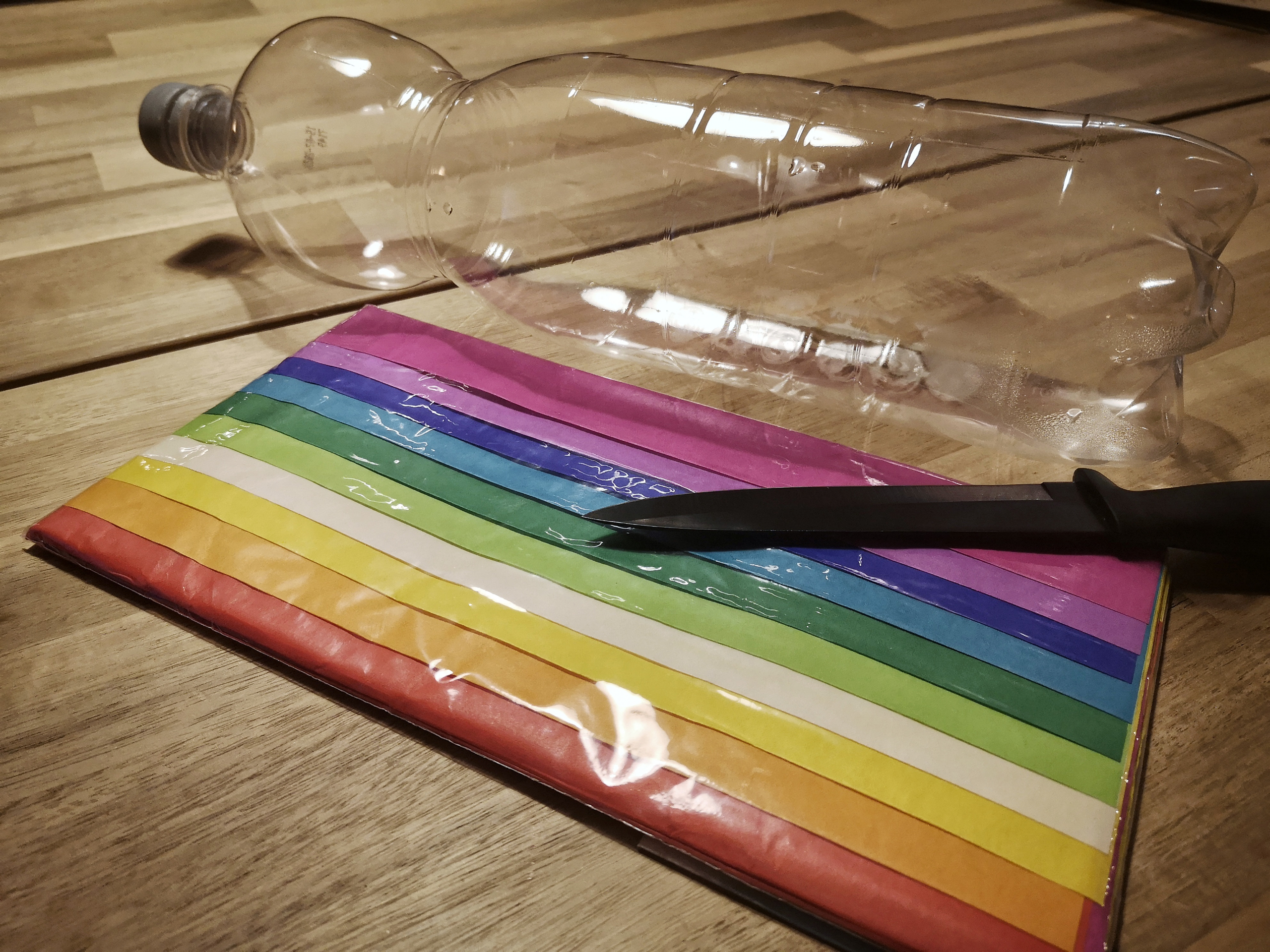 Ich habe zwei Kinder und der Größere bastelt seine Laterne im Kindergarten. Damit der Kleine aber nicht leer ausgeht, fertigen wir zuhause noch eine an. Wie das ganz einfach geht, zeige ich euch hier: Alles, was ihr dafür braucht, sind eine leere Plastikflasche, Bastelkleber, ein scharfes Messer, Klebeband, einen Laternenstab (zum Beispiel ein Ast oder Bambusstab) Transparentpapier und natürlich getrocknete und gepresste bunte Blätter.