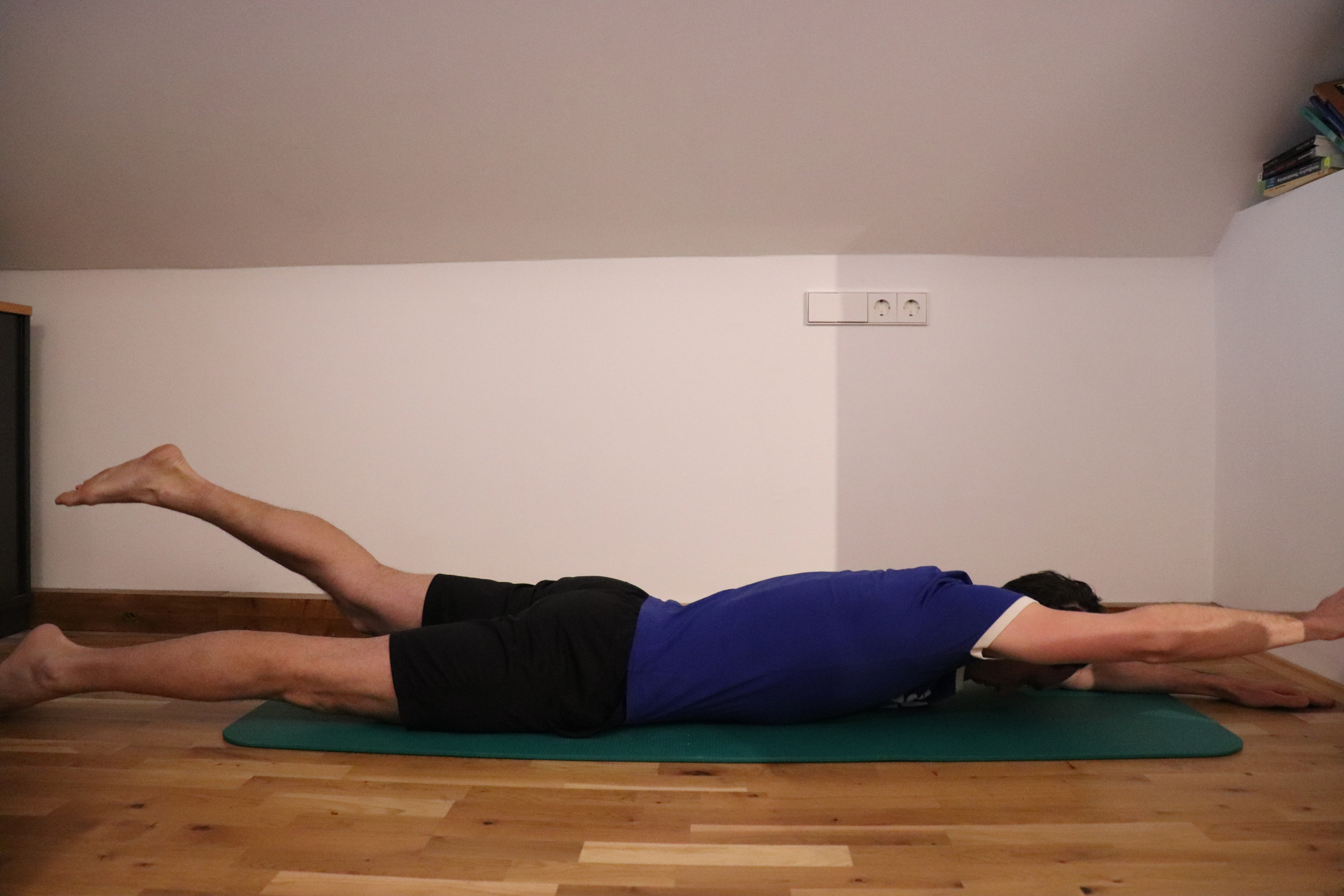 zuerst linker Arm + rechtes Bein