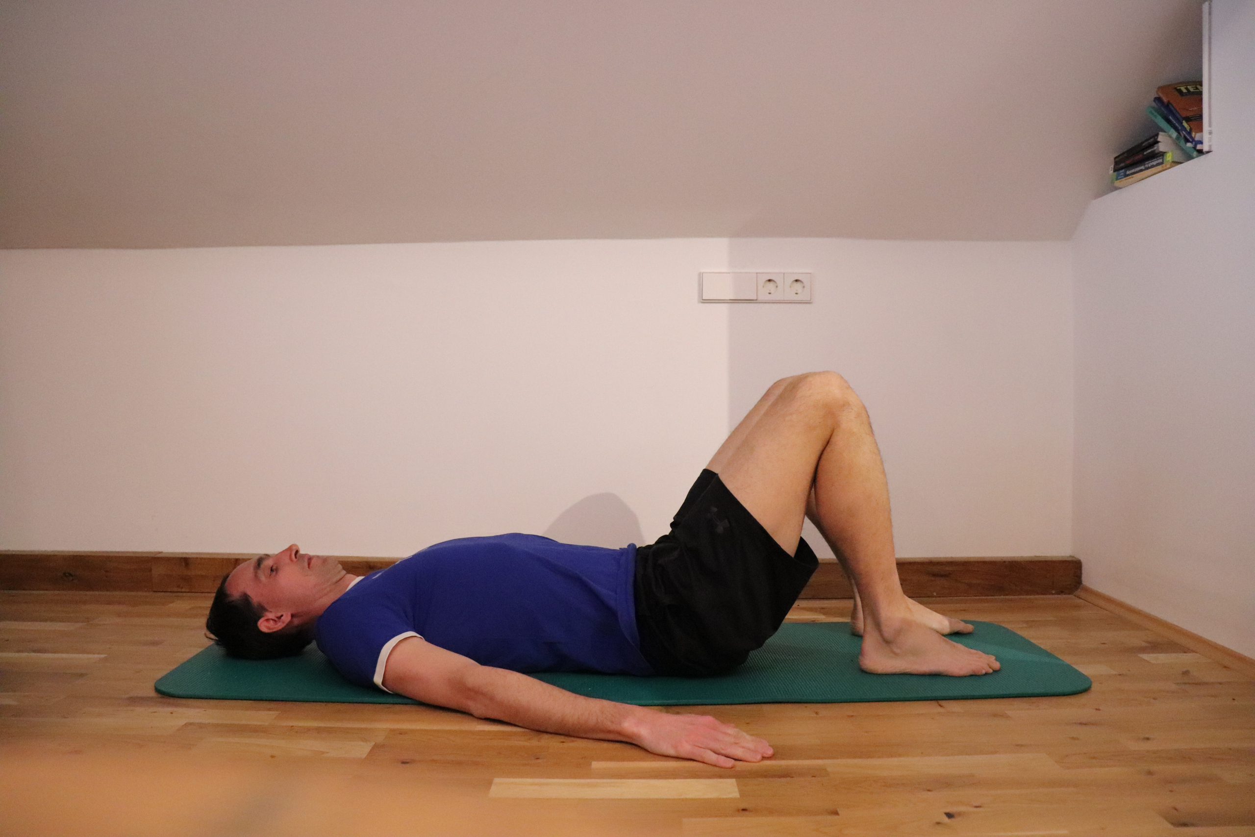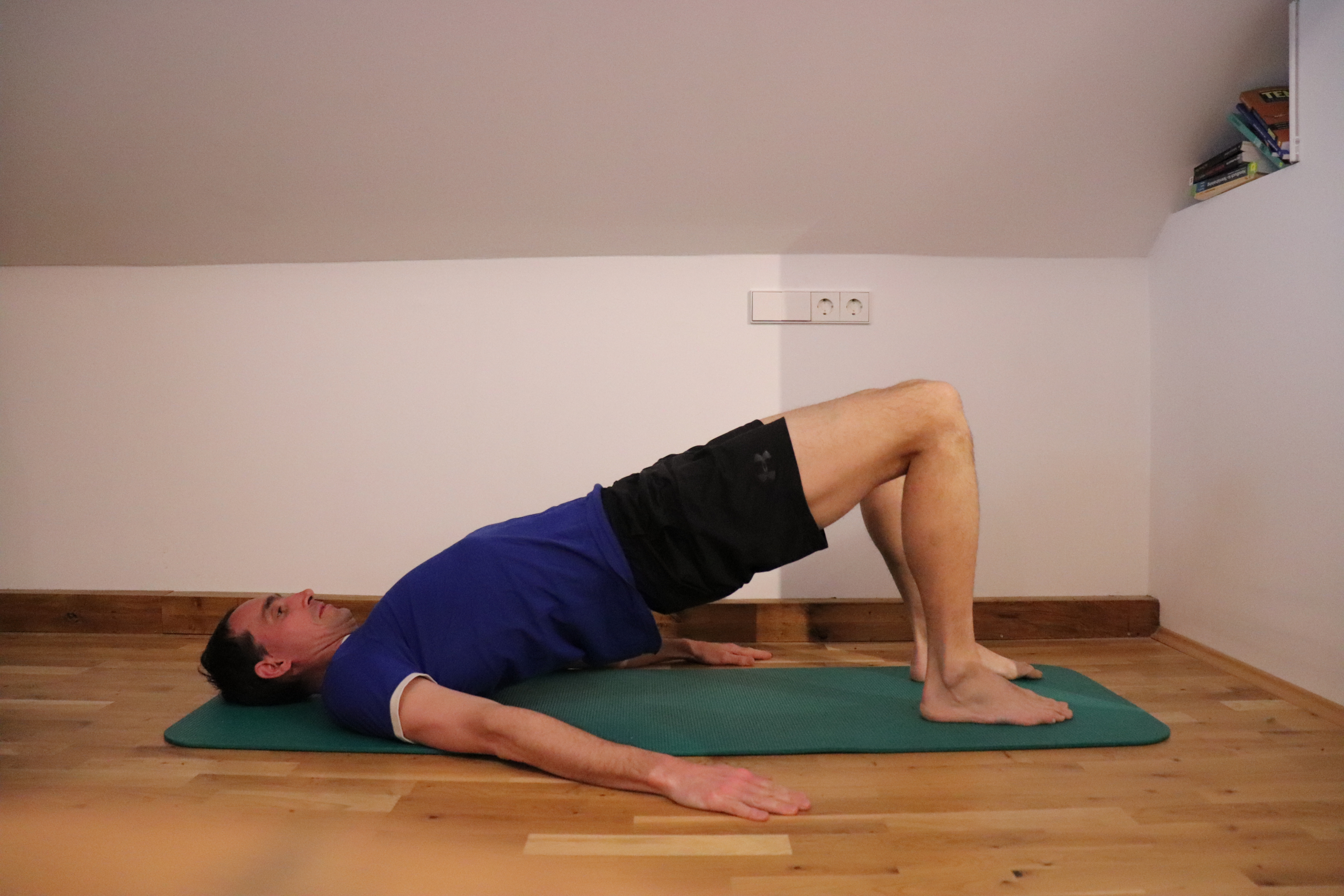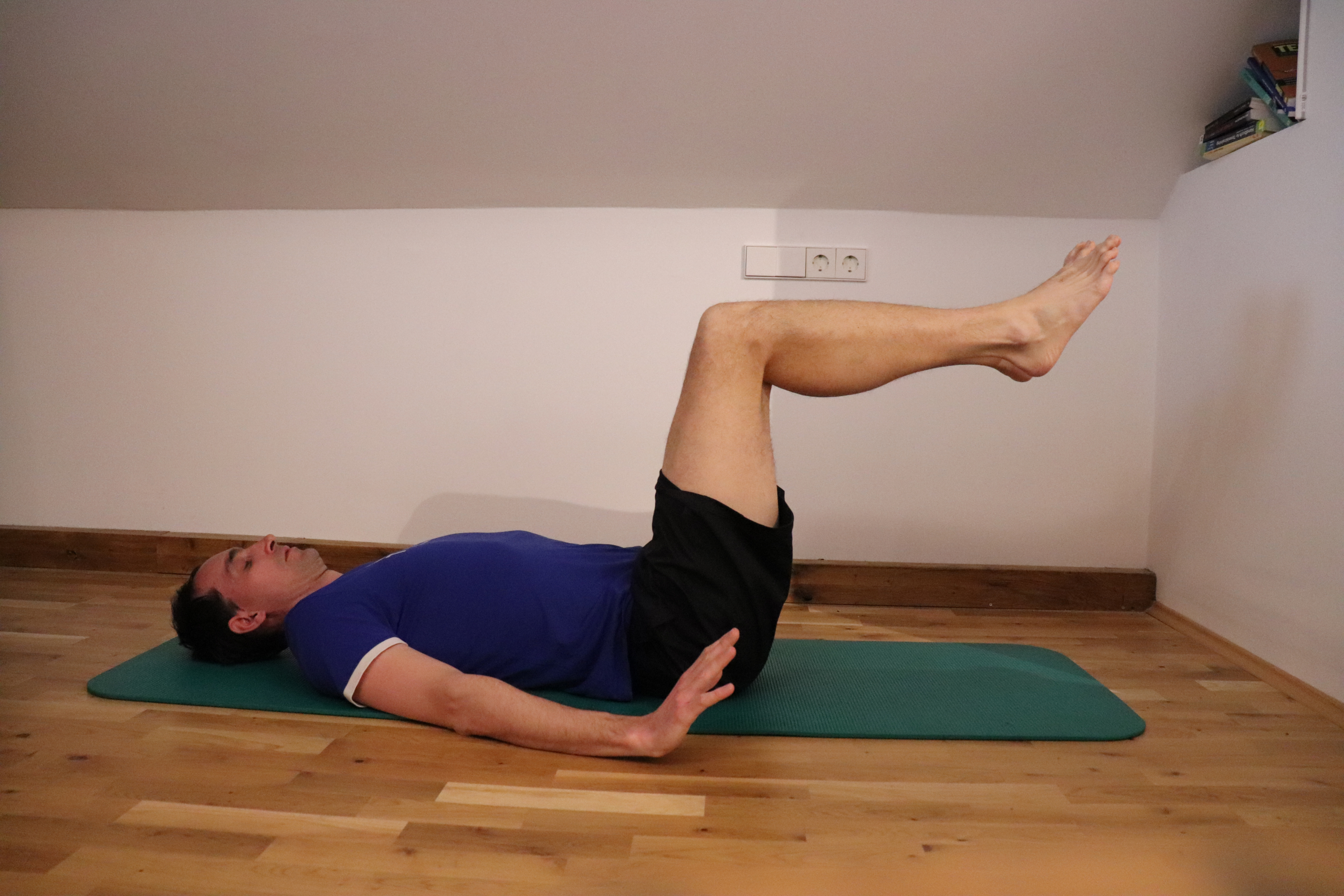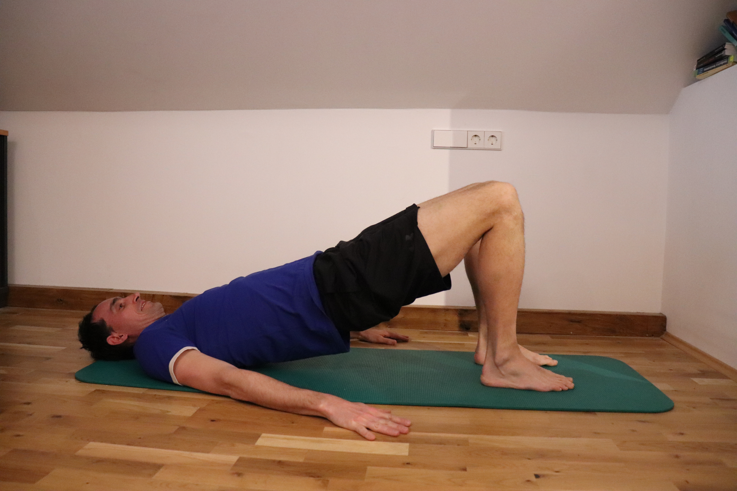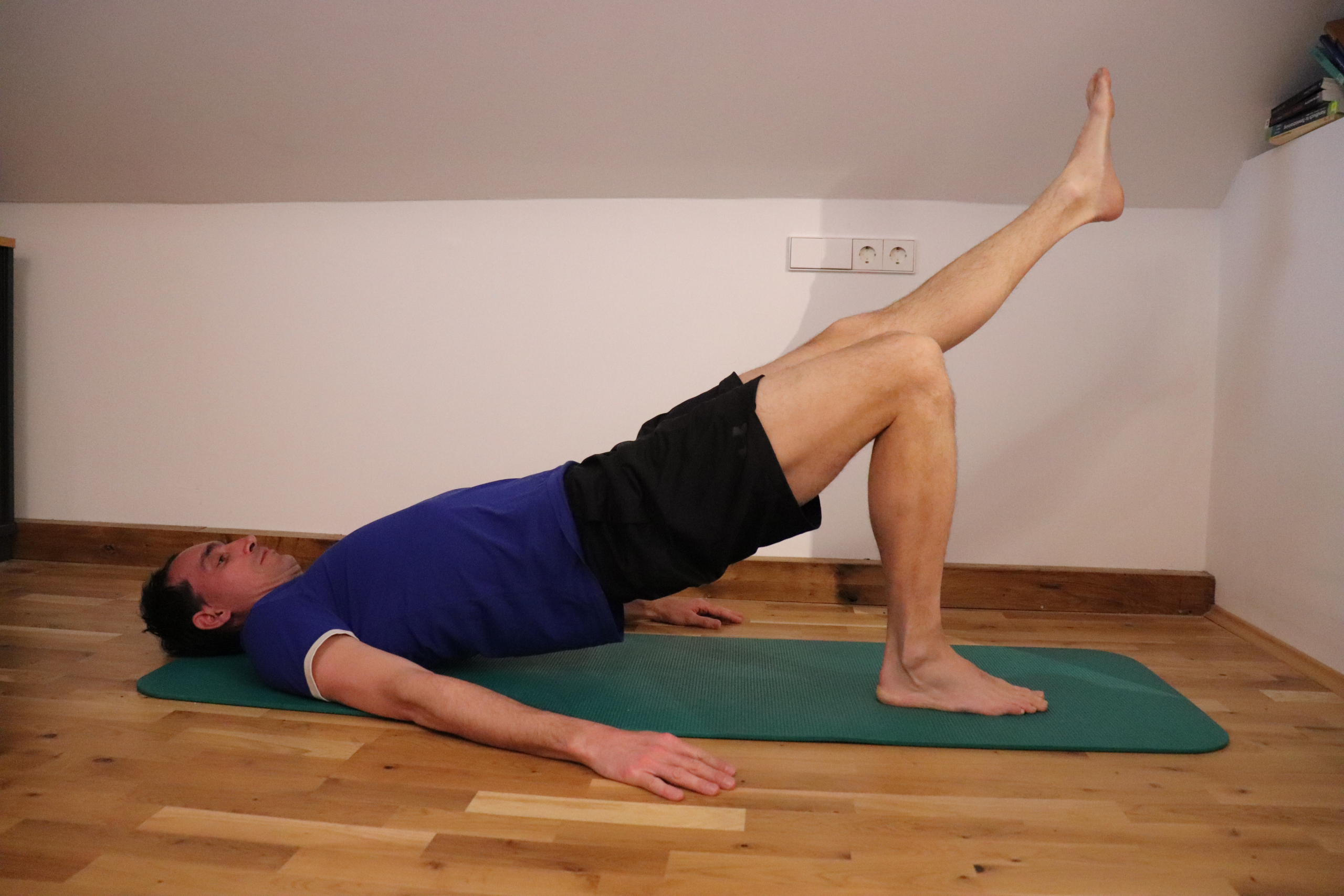 Übung 7: Becken bleibt gehoben + Beine abwechselnd strecken