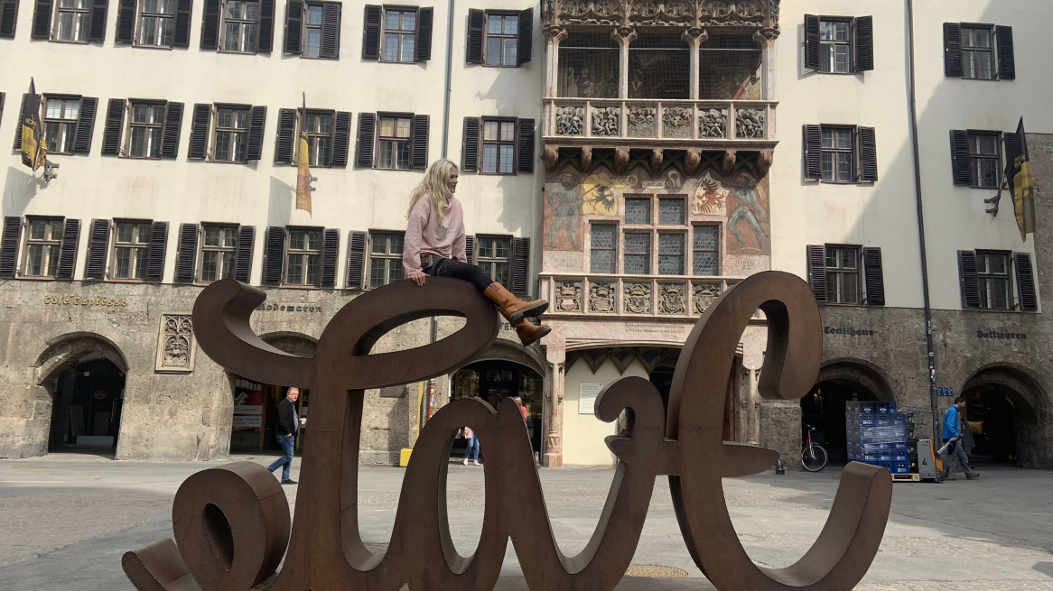 Um dieses Kunstwerk zu verpassen, muss man besonders viel nachdenken! Vor dem Goldenen Dachl in Innsbruck, dem Herzen derInnsbruckerAltstadt, steht eine Skulptur aus Buchstaben. Es ist LOVE HATE von der deutschen Künstlerin Mia Florentine Weiss, geboren 1980. Wenn man vor dem Goldenen Dachl steht, kann man deutlich die Worte "Liebe" sehen, aber wenn man die gleichen Buchstaben auf der anderen Seite der Skulptur liest, erscheint die Botschaft "Hass". Dieses Werk, das auf Initiative der Innsbrucker Kunstgalerie artdepot in die Tiroler Landeshauptstadt kam, wurde bereits an symbolträchtigen Orten in verschiedenen europäischen Städten wie München, Berlin, Prag, Brüssel und Moskau ausgestellt. Sie ist mit einer Friedensbotschaft, aber vor allem mit einer Reflexion über einen Perspektivenwechsel unterwegs.