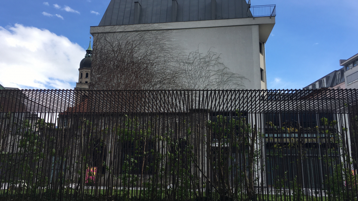 Im gleichen Hof, im hinteren Teil des Landestheaters, steht ein großer "grüner" Käfig. Es handelt sich um das Werk "Wild Cube" des international bekannten Tiroler Künstlers Lois Weinberger (1947-2020) (1947-2020), ein international anerkannter Tiroler Künstler, der auch im österreichischen Pavillon auf der Biennale von Venedig und der Documenta ausgestellt hat. Im Mittelpunkt ihrer Forschung steht die Beziehung zwischen Kunst und Natur. In dieser Arbeit, die in verschiedenen Versionen auch in anderen österreichischen Städten realisiert wurde, wird ein durchlässiger Zaun errichtet, der mit der Ambiguität von Abgrenzung und Kontiguität zwischen Innen und Außen spielt. Im "Wild Cube" ist die eigentliche Skulptur die wilde Vegetation, denn sie ist das Einzige, was man sehen kannéWie die Künstlerin schreibt, "wächst sie, was sie will". Die Arbeit ändert sich ständig, je nach den Jahreszeiten. Jetzt stehen die Bäume und Sträucher noch am Anfang ihres Erwachens, aber wenn die Vegetation am Ende des Sommers den Höhepunkt ihrer Ausdehnung erreicht, ragen Äste und Wedel über die Gitterstäbe hinaus und lassen den Käfig stellenweise verschwinden.