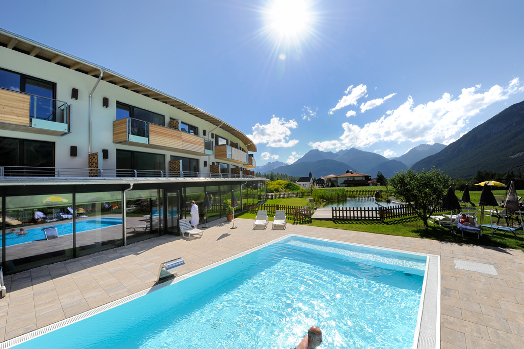 Im Alpenresort Schwarz in Mieming bekommt ihr Urlaub mit höchster Qualitätsgarantie. Der Concierge steht für 5-Stern-Service und erfüllt fast jeden Wunsch – nur Urlaub machen müsst ihr selbst. Die Schwarz-Wasserwelten mit 9 Pools wurden mit dem BSW-Award prämiert; der Hotelgarten gilt als der schönste Österreichs. Zu Tisch gibt es nur das Beste aus der Region; auch die Küche ist sprichwörtlich ausgezeichnet. Apropops Auszeichnungen: Sie werden dem Betrieb praktisch laufend verliehen und zeugen von konstanter Qualität. Dazu gehören der „Holiday Check Award“, der „European Excellence Award 2013“, der „Trigos-Preis“ für Unternehmen mit Verantwortung oder die Auszeichnung „Exzellent“ des Deutschen Wellnessverbandes. Im Hotelprogramm steht alles, was in Sachen Sport in der Region möglich ist und der Golfplatz ist direkt vor der Haustür. In der 5.000 qm großen Wellnessanlage samt Wasserwelten für Kinder findet ihr Entspannung und Freude. Die Privatklinik bietet Leistungen von Kosmetik bis zur ästhetischen Chirurgie. Neben vielen Superlativen des Hauses sind regionale Wertschöpfung und soziale Verantwortung sehr wichtig: Mitarbeiter machen autofreie Wochen oder besuchen die Bewohner des Altenheimes. Das Alpenressort Schwarz ist die Institution der Region und ein Generationenhotel, in dem sich jeder wohlfühlt: Für Kinder, Eltern und Großeltern ist Platz genug – auch im Wellness- und Spa-Bereich.