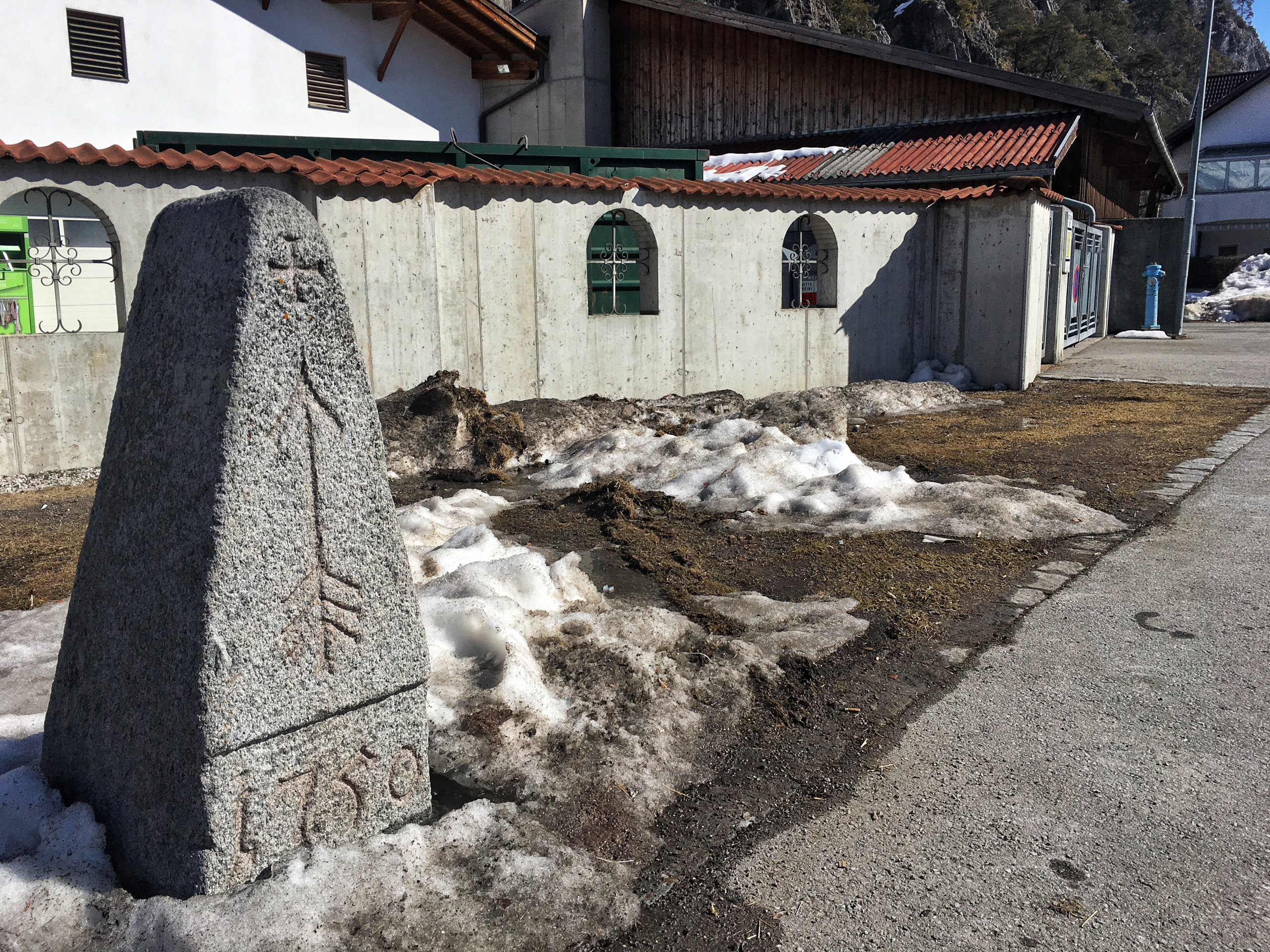 Für mich gibt es noch einen weiteren wichtigen Hinweis, nämlich eine Bergspitze in Pyramidenform, die von der Kirche aus zu sehen ist: den Schafmarebenkogel. Solche ‚Dreiecksspitzen’ waren für die Räter ‚heilige Berge‘ und sind in Tirol von vielen Wallfahrtskirchen aus zu sehen. (Aber auch von Kultplätzen, wie das Beispiel des B’schriebenen Steins im Viggartal zeigt.) Auch wer geglaubt hätte, das Kirchlein sei immer irgendwie weit abseits der Verkehrswege gestanden, täuscht sich. St. Georg in Leiblfing stand direkt an einem historisch wichtigen Transportweg im Tiroler Oberland.