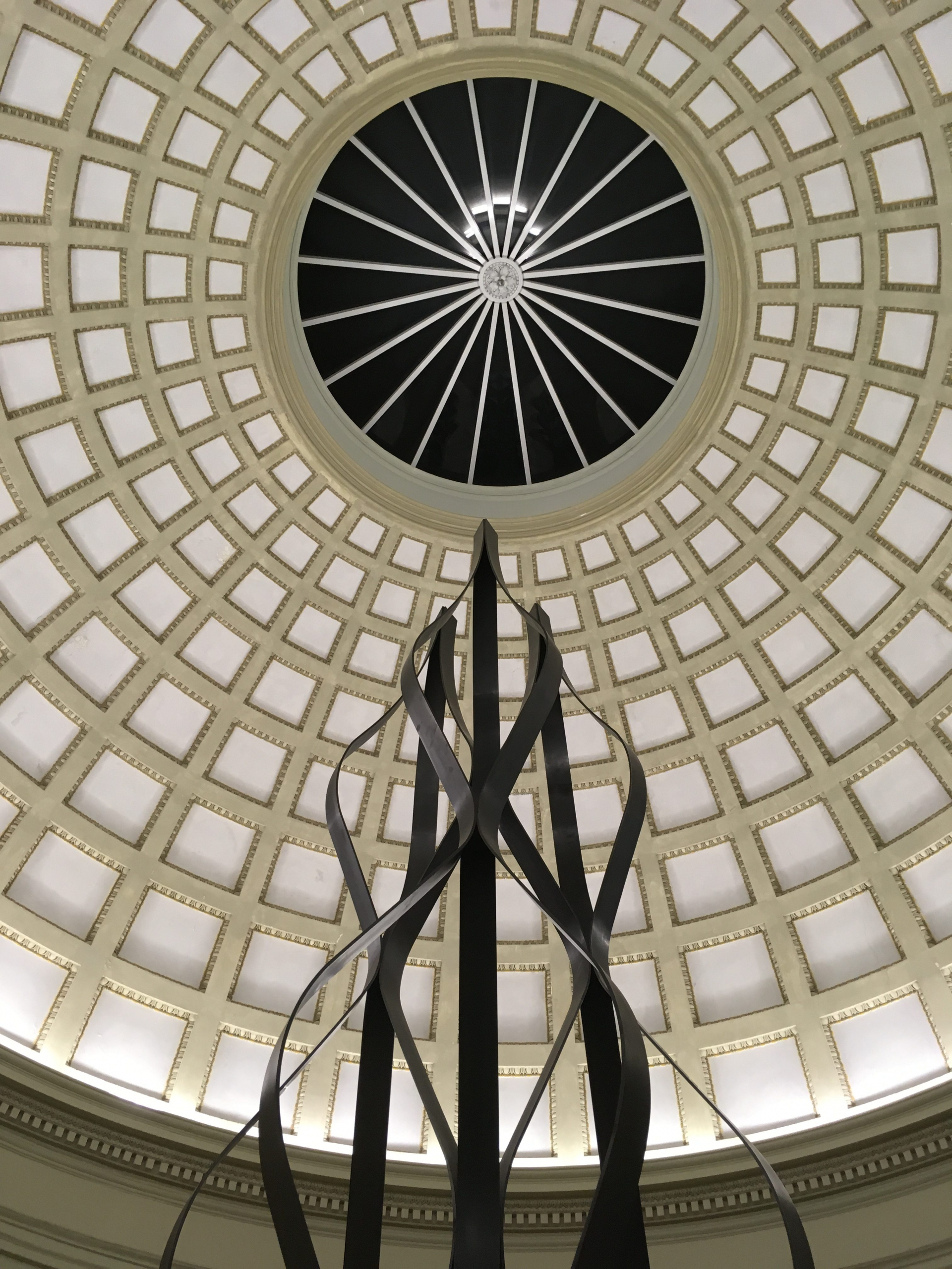 Then it was time to head up to the first floor to view the paintings of the medieval renaissance, mainly Italian and Dutch. However, it was a stylish southern German wooden crucifix, circa 1200, that really caught my eye. After passing the stained glass and tiptoeing over the squeaky floor I reached the Baroque artefacts: iron work and early musical instruments. There’s also a fine dome you can stand under on the second floor.