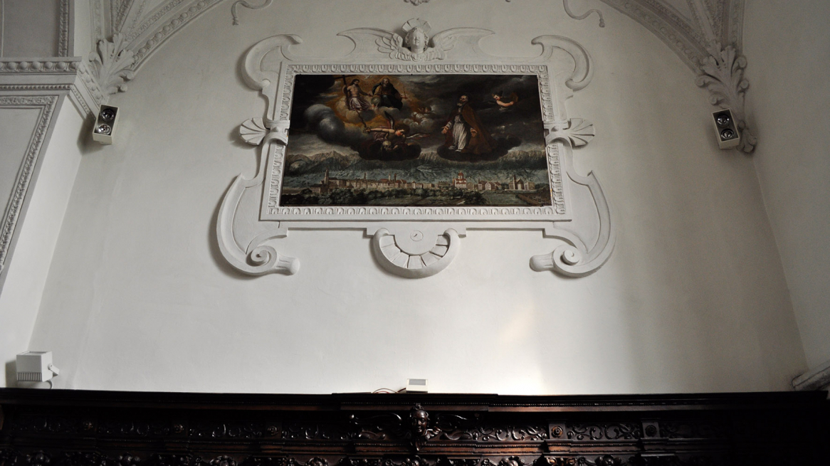 At first glance, it seems rather inconspicuous in this consecrated environment. And indeed, the gem only reveals its significance upon closer inspection. The rectangular canvas painting with stucco frame, positioned overhead and thus not immediately in view, is neither dated nor signed.