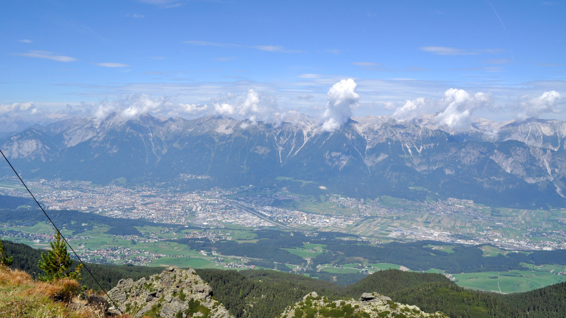 If you want to have a look at the Nordkette from a distance, you have to go up the other side of the Inntal. Take the Patscherkofel cable car to the mountain station (of course you can also get there on foot!) and continue hiking on the Swiss Pine Trail Direction Viggarspitze. On the way there it presents itself in its full splendour. And if you have photographed the painting of the Nordkette in the Jesuitenkirche or even have it in your head, you can have fun comparing contours and guessing mountain peaks!