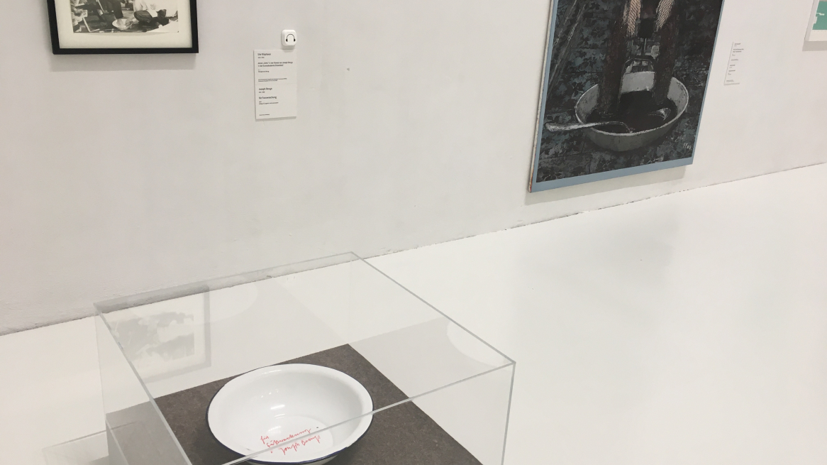 Another work in the exhibition tells us about Beuys. The artist, who introduced materials such as grease, wax and felt into art, "performed" in 1971 a performance in which he washed the feet of some people in the audience. A replica of the enameled basin used for the performance reminds us of this moment in art history.