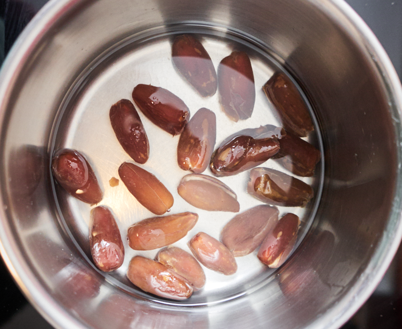Cook the dates in a little water until they are soft. Meanwhile, roughly chop the nuts. Tip: Roast the nut mixture briefly in the oven - this intensifies the nutty flavour!