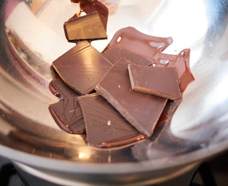 Allow the mass to cool. Optional (but highly recommended): Melt dark chocolate in a water bath and spread over the bar mixture.