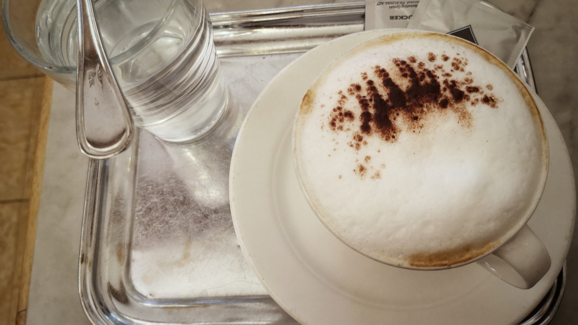 I like the charm that this café exudes. It invites you to sit together, chat, and read the newspaper. On the menu, you'll find the usual suspects as well as a few exotics, such as ginger coffee (lightly sweetened hot coffee with ginger, honey and whipped cream topping). Those who prefer it with a shot are also guaranteed to find what they are looking for: Whether it's with amaretto, brandy or plum brandy, you can get (almost) anything here. I hardly dare to confess that I'm a coward and mostly stay true to my beloved cappuccino. However, I'm a bit more experimental with the cookies, because I choose some with chocolate and sea salt and I have to say, the combination of sweet and salty has something.