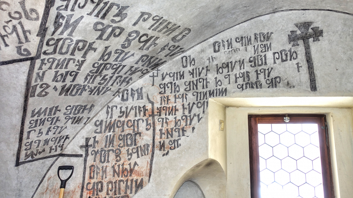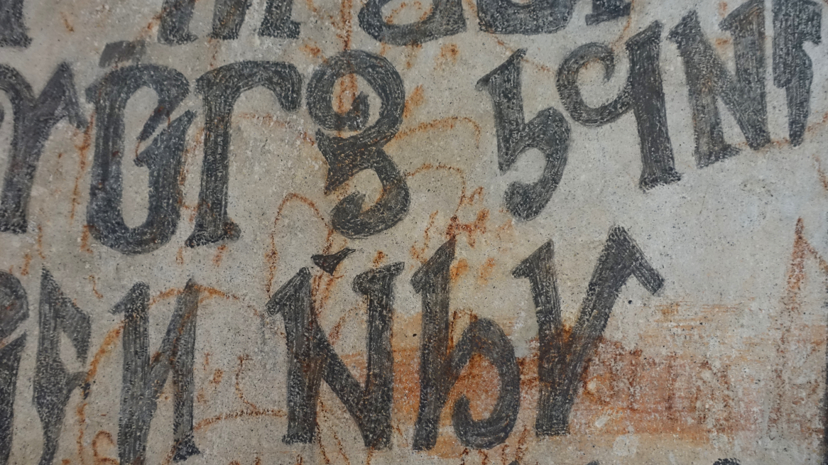 There used to be a lot going on in today's mortuary chapel. This is evidenced by red chalk writings on the wall. ©W. Kräutler