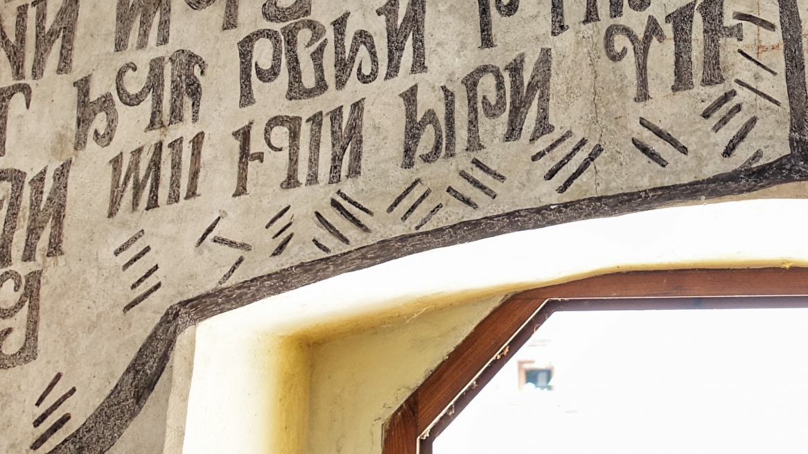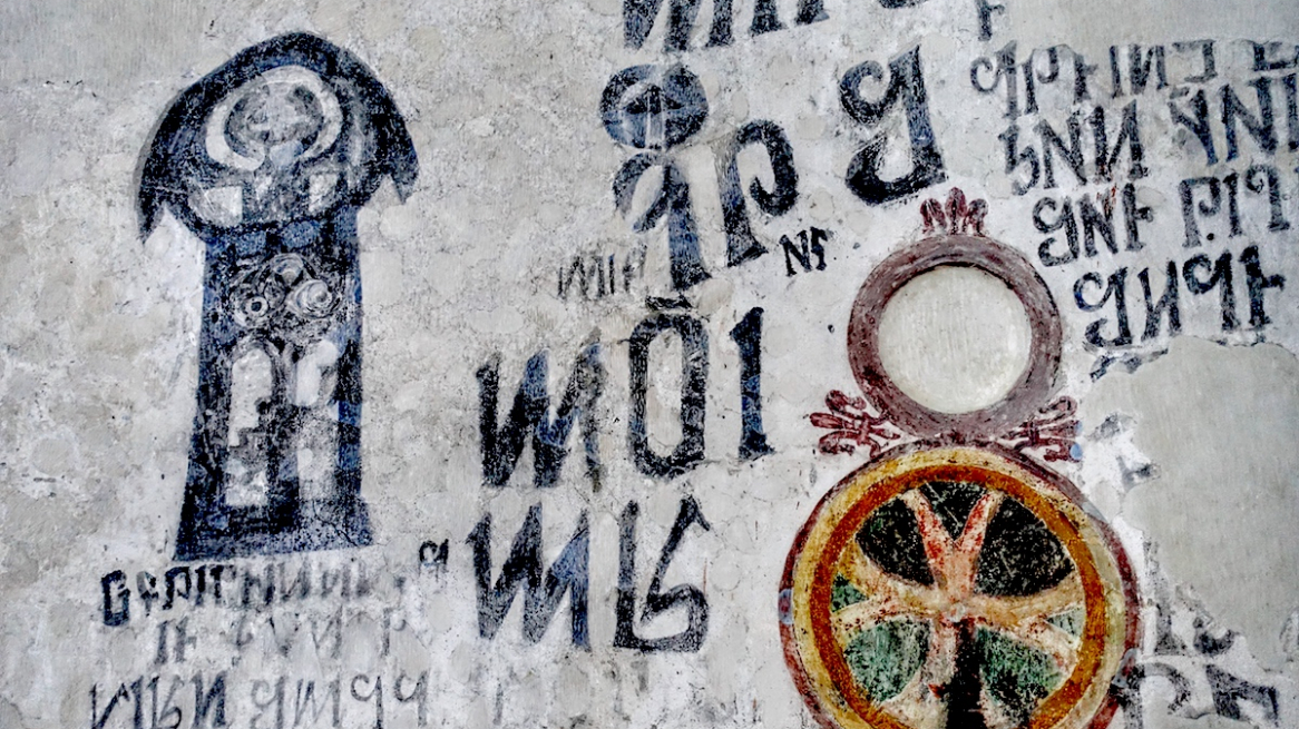 As a reminder: in the mortuary chapel of Igls and in the church of St. Sigmund im Sellrain, cryptic black signs were uncovered on the wall during renovation work. The signs in Igls came to light in 1970, those in St. Sigmund somewhat later. That they were made by the same hand was clear from the start, even to me as a bloody layman. At first glance, they do not resemble any known script and are somehow reminiscent of Cyrillic letters. So far there was only one attempt to decipher them. With rather moderate success