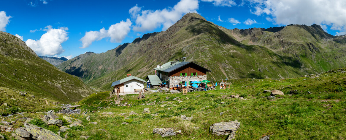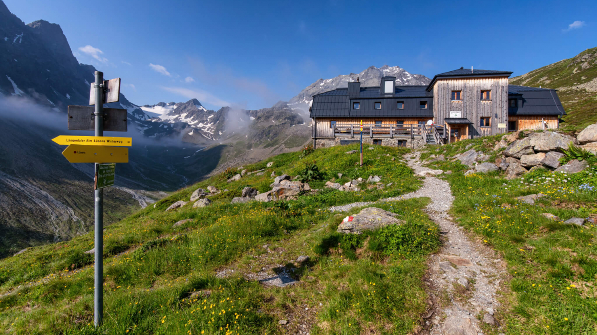 The fourth stage of the Sellrainer Hüttenrunde is also the crossing into the Ötztal to the Schweinfurter Hütte via the Gleirschjoch at 2,751 metres. It is a shorter stage and therefore something to relax. The Schweinfurter Hütte is located in the Horlachtal, a side valley of the Ötztal. The trail is quite easy and you reach the destination at 2,028 meters relatively quickly. The Schweinfurter Hütte lies at 2,028 metres.