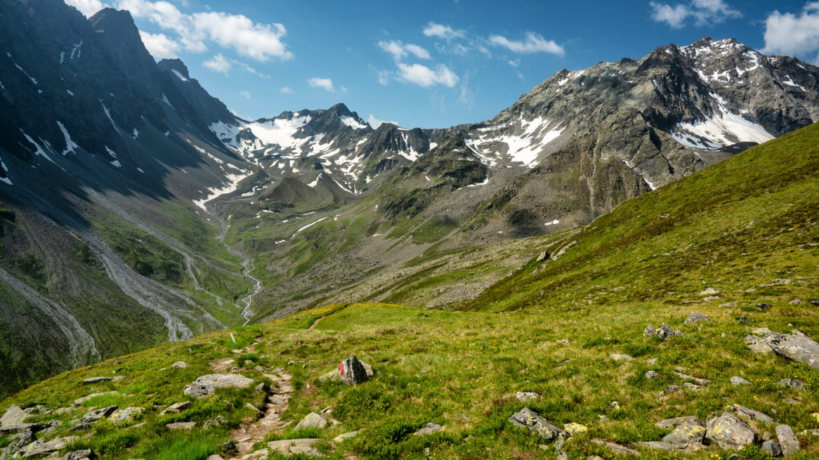 The second stage of the Sellrainer Hüttenrunde leads from the Potsdamer Hütte to the Alpengasthof Praxmar or, for the more athletic, directly to the Westfalenhaus. This stage is the transition from the Fotschertal valley to the Lüsener Gletschertal valley.