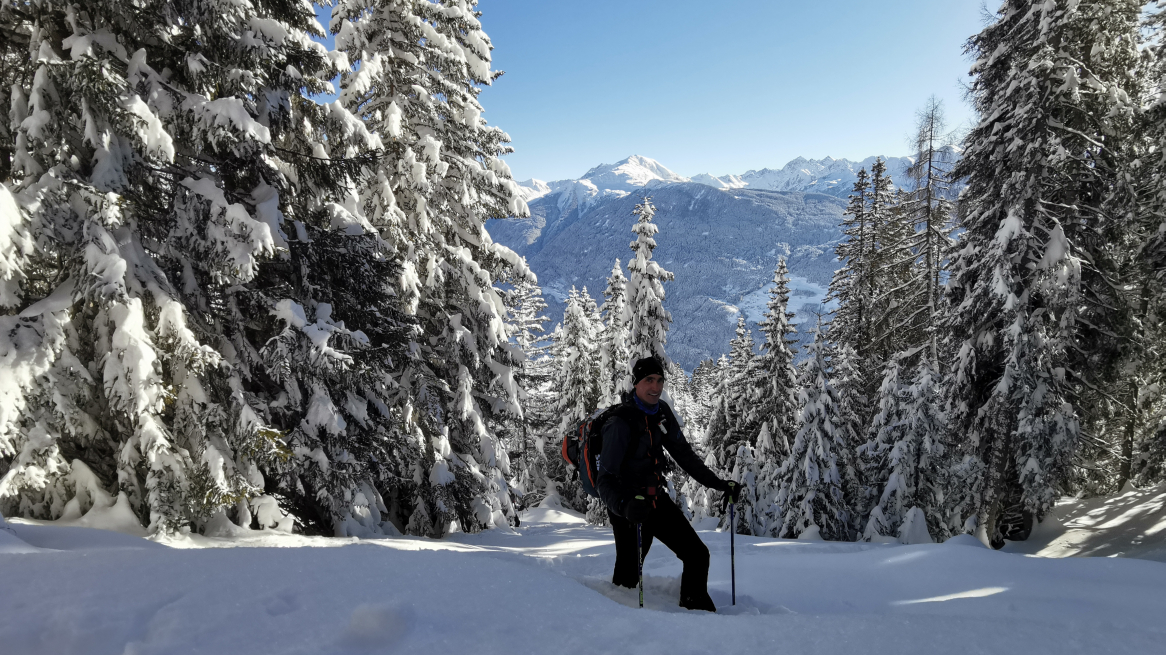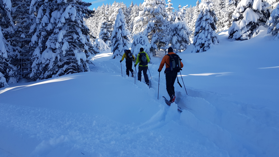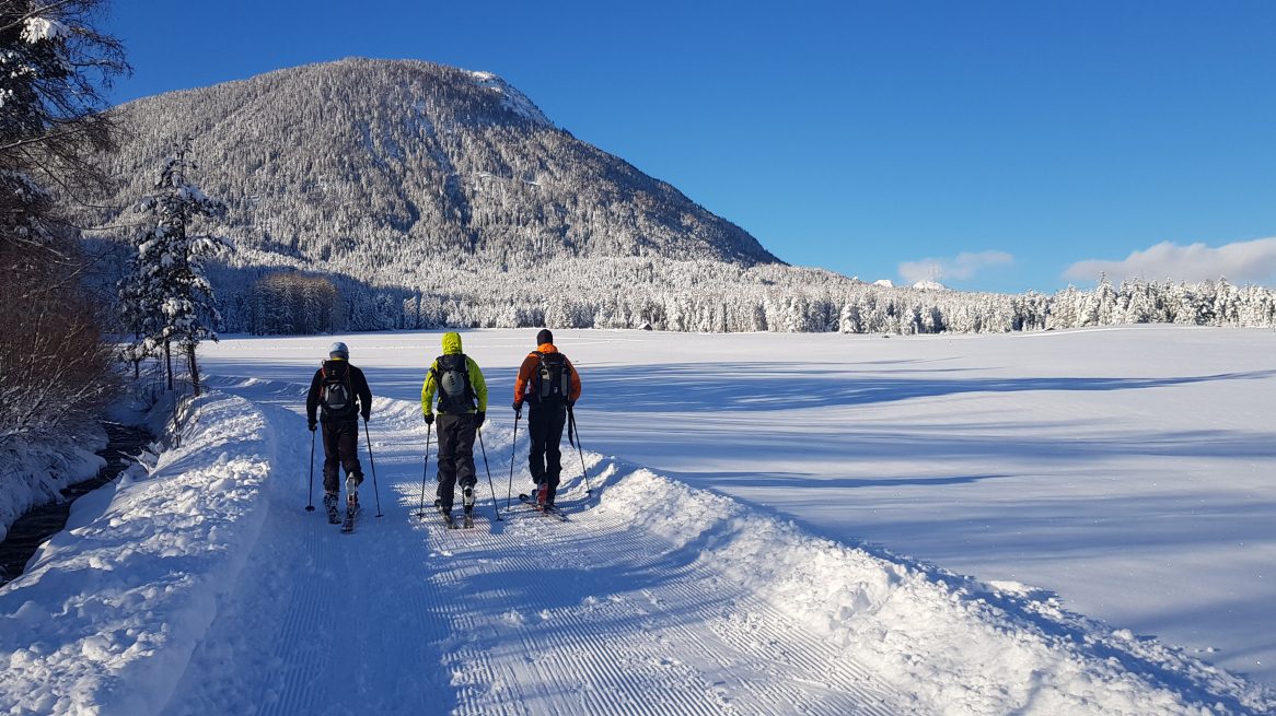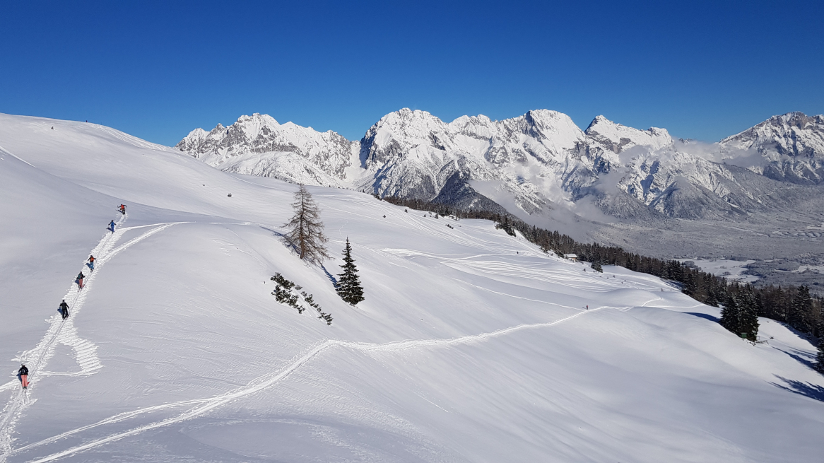 Es un día después de una abundante nevada en la zona de Innsbruck. Hubertus, Thomas, Gregor y yo, partimos por primera vez en dirección a Simmering. De hecho, ninguno de los habitantes de Innsbruck ha hecho una excursión de esquí en Obsteig, el municipio más occidental de la meseta de Mieminger.