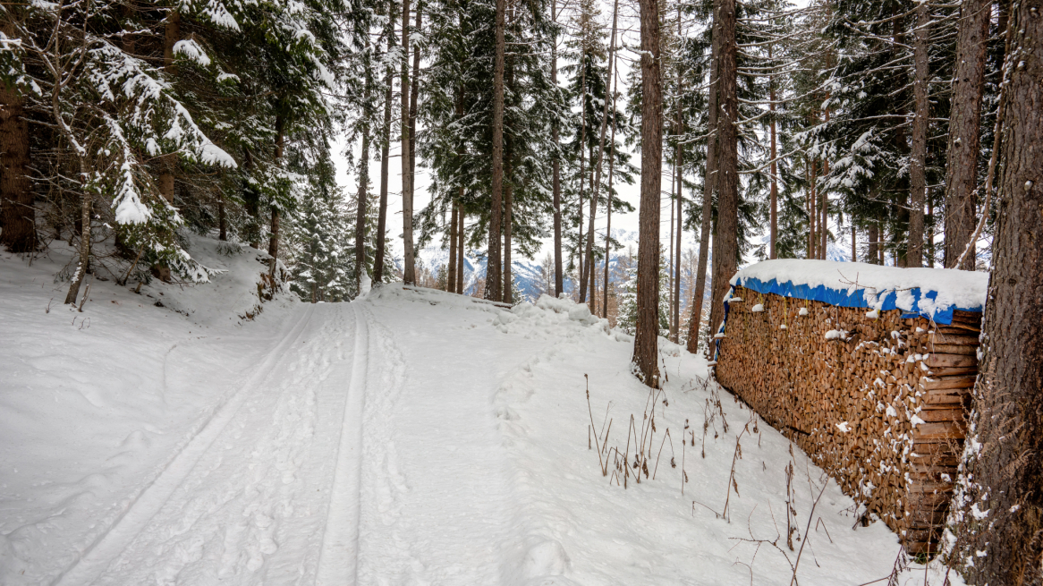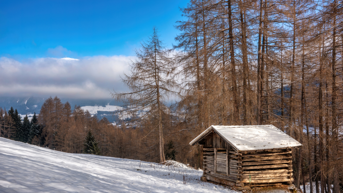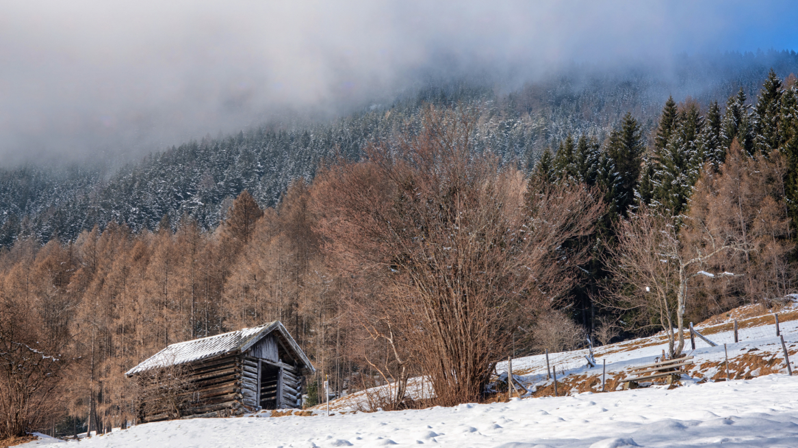 Les prairies de Telfer sont surtout connues en automne pour leurs mélèzes en feu. Mais l'hiver n'a rien à envier à ce spectacle. De nombreux chalets en bois dans le paysage enneigé font cliqueter les appareils photo et les caméras des smartphones. Le chemin est bien dégagé et accessible à tous. La plupart du temps, le chemin est plat et l'on peut profiter sans trop d'efforts du magnifique paysage de notre randonnée en direction de Mutters.
