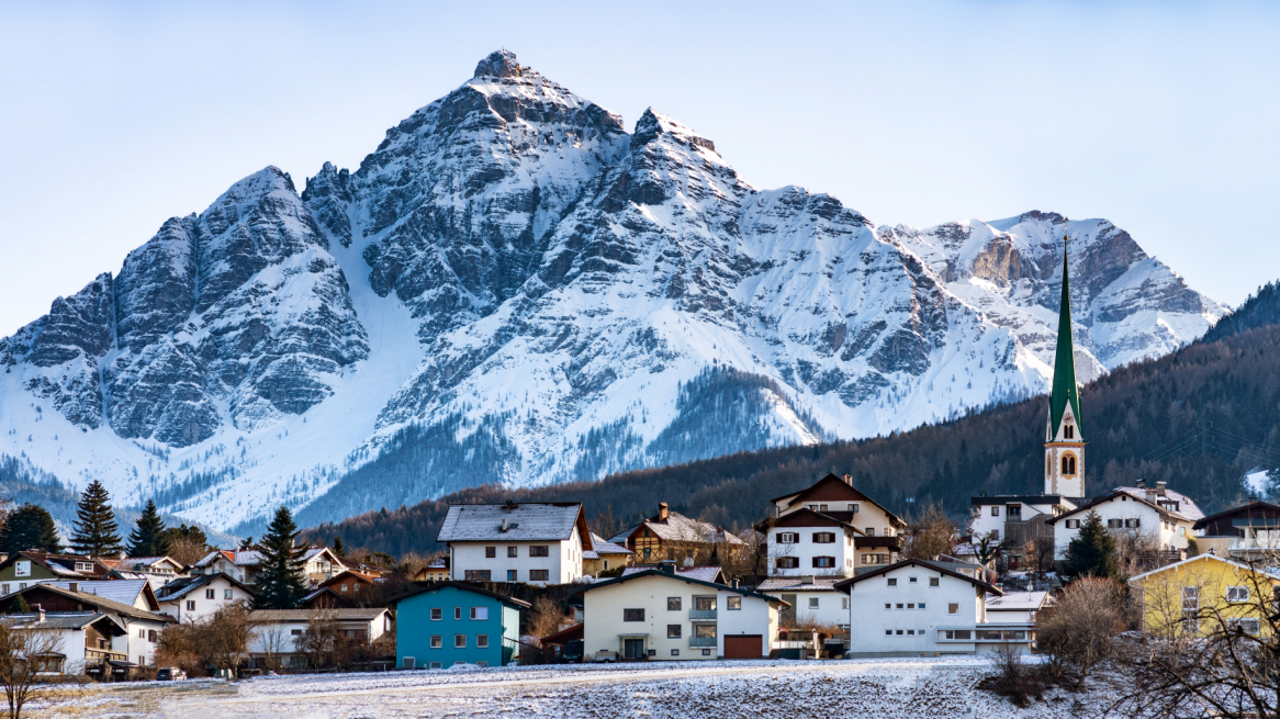 Nous prenons le train jusqu'au village de Telfes, où commence notre randonnée hivernale. Juste en face, de l'autre côté de la vallée, se trouve le mont Serles, qui est malheureusement un peu couvert de nuages aujourd'hui. Par temps radieux, elle est particulièrement proche et impressionnante. On peut alors facilement s'imaginer qu'elle porte à juste titre le nom d'"autel du Tyrol".