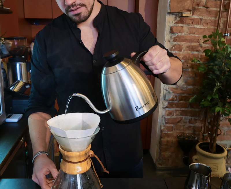 - Il bollitore: non troppo caldo! L'acqua dovrebbe essere circa 95°C. Se il vostro bollitore non ha un display della temperatura, lasciatelo semplicemente raffreddare per circa un minuto dopo l'ebollizione.
