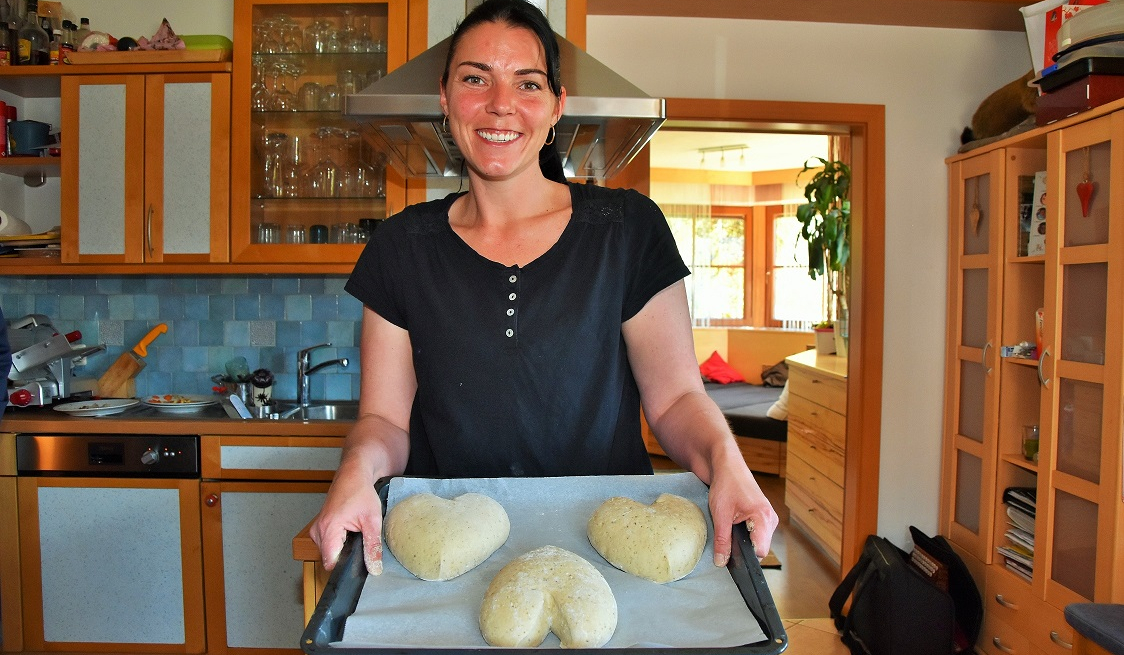 Reinhards vrouw Magdalena is brood aan het bakken. "Wat zou een boerderijwinkel zijn zonder brood?" vraagt ze eerlijk en met vaardige hand vormt ze het deeg tot harten. Op dinsdag en vrijdag zijn de broden vers uit de oven verkrijgbaar in de Ladele.