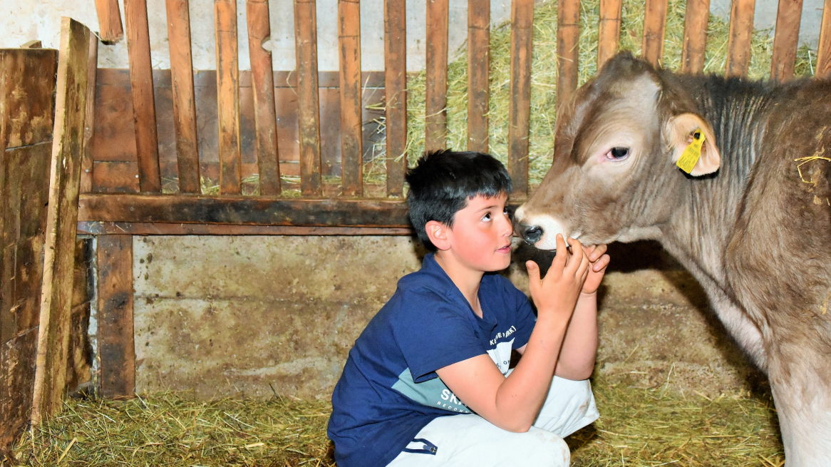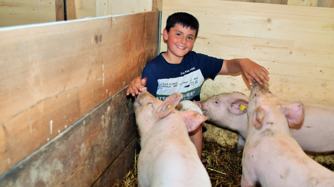Zoon Kilian speelt voor de boerderij. Als wij volwassenen naar het vee willen kijken, gaat de 11-jarige met ons mee. Geen twijfel mogelijk: hij kent de weg in een schuur! Reinhard mest momenteel acht varkens, en is van plan er in de toekomst nog meer te houden. Niet ver hier vandaan zijn een stuk of 20 runderen van oude rassen. In tegenstelling tot Herbert, doet Reinhard aan landbouw als bijverdienste. Zijn hoofdberoep is slager - wat veel verklaart.