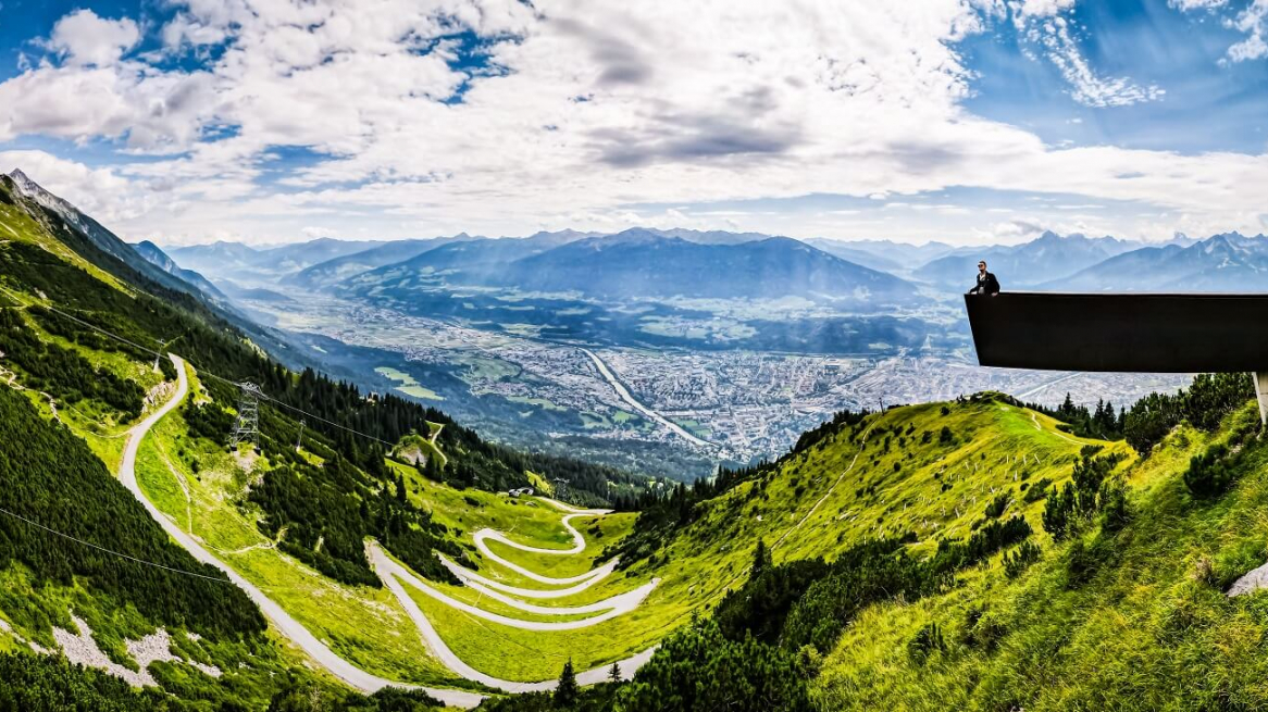 Op bijna 2000 meter boven de zeespiegel, met de stad beneden je, bergen om je heen en een epische zonsondergang die de bergen en valleien in het zuiden verlicht, wordt het nooit saai. Ik ben al bijna tien jaar in Innsbruck en ik zou dit uitzicht steeds weer opnieuw kunnen bekijken.