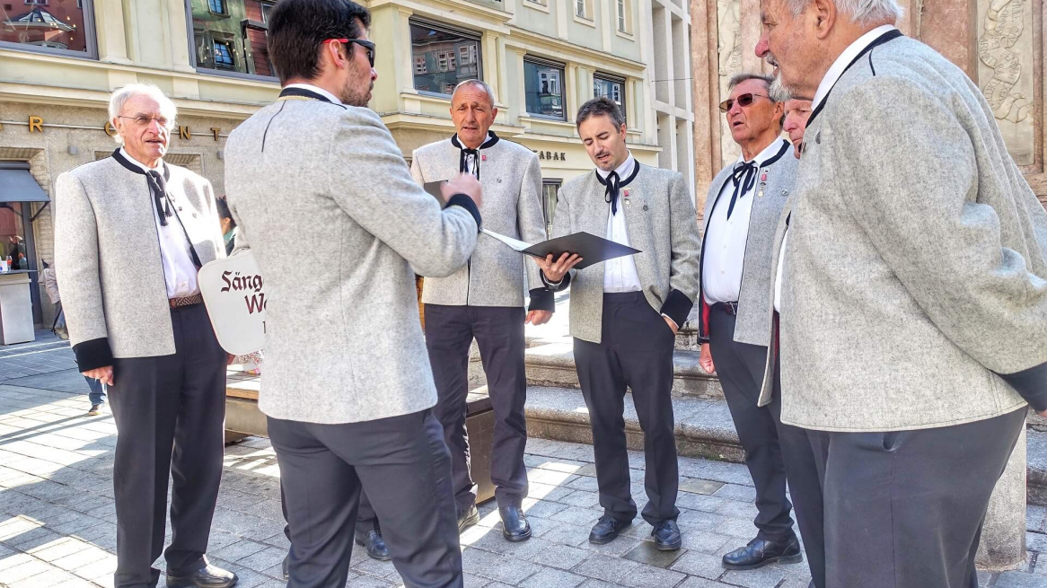 De voorstellingen voor het Goldenes Dachl waren niet alleen interessant voor toeristen en voorbijgangers. Verschillende bruiloftsfeesten - de burgerlijke stand in het Goldenes Dachl is bijzonder populair - genoten van alpenmuziek op deze mooie zaterdag.